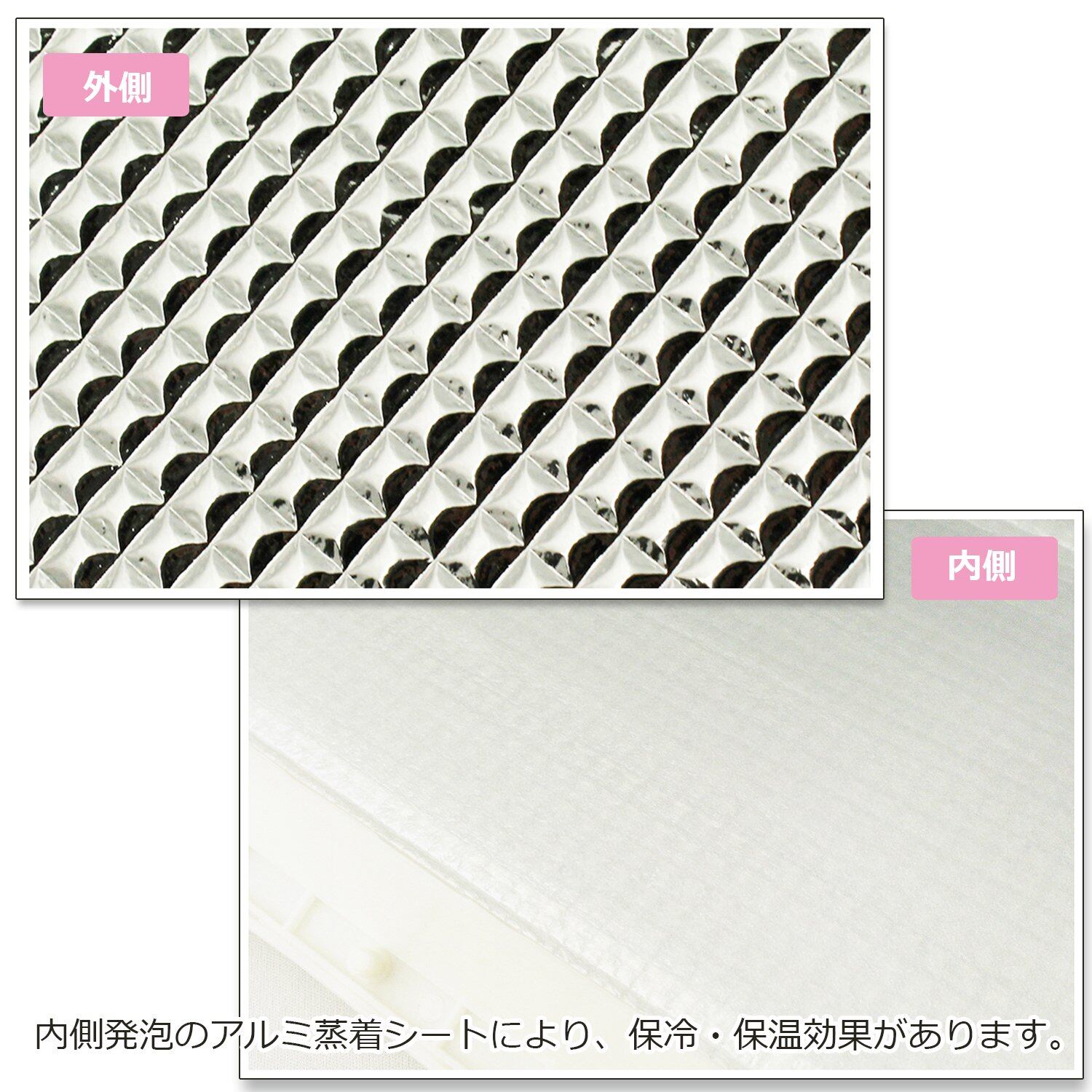 ●内側発泡のアルミ蒸着シートにより、保冷・保温効果がある