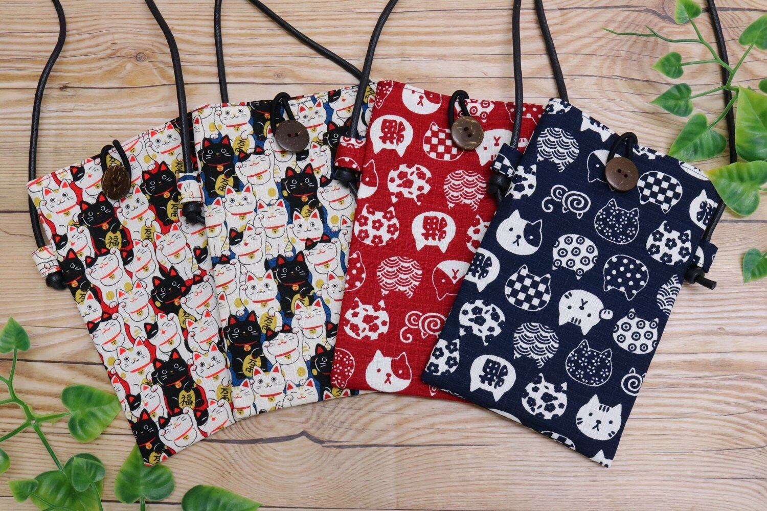 [京佑] 日本製 スマホ 携帯 ポシェット ねこ 猫 約17×11.5cm 軽量 スマホショルダー 斜めがけ にゃんこもん 紺 本体サイズ:11.5×17cm 材質:綿 原産国:日本 紐/約125cm 猫柄のスマホポシェット 和風レトロな柄が可愛らしい スマホがすっぽりと入るので外出に便利