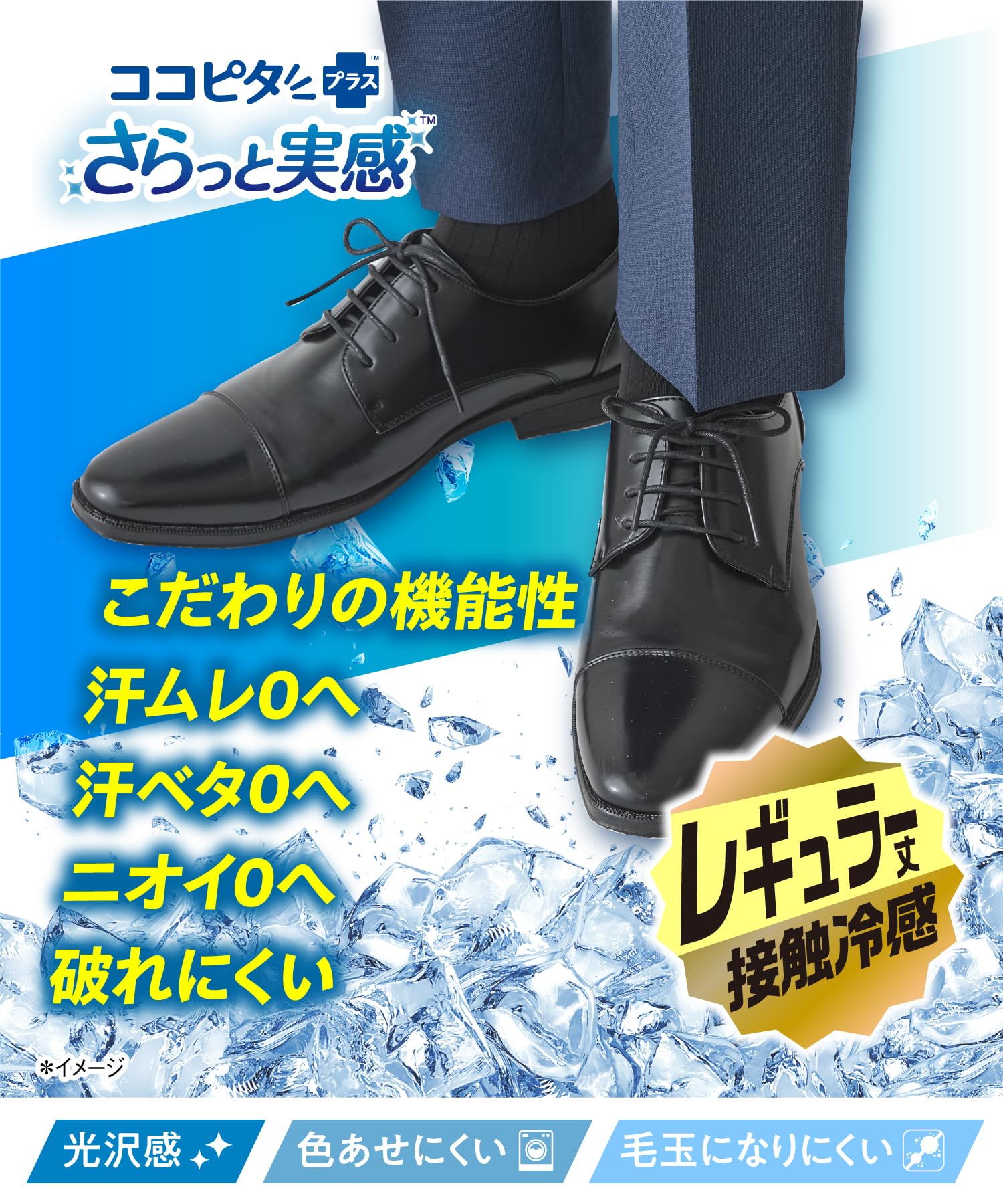 【さらっと実感のヒミツ】接触冷感素材で履いた瞬間ひんやりし、 さらっとメッシュ構造で通気性2倍(※)を実現。 1秒吸水・速乾素材でべたつきやムレが気にならない。さらに、消臭素材で、ニオイ対策も◎毎日履きたくなる、嬉しい機能です。(※従来品比)