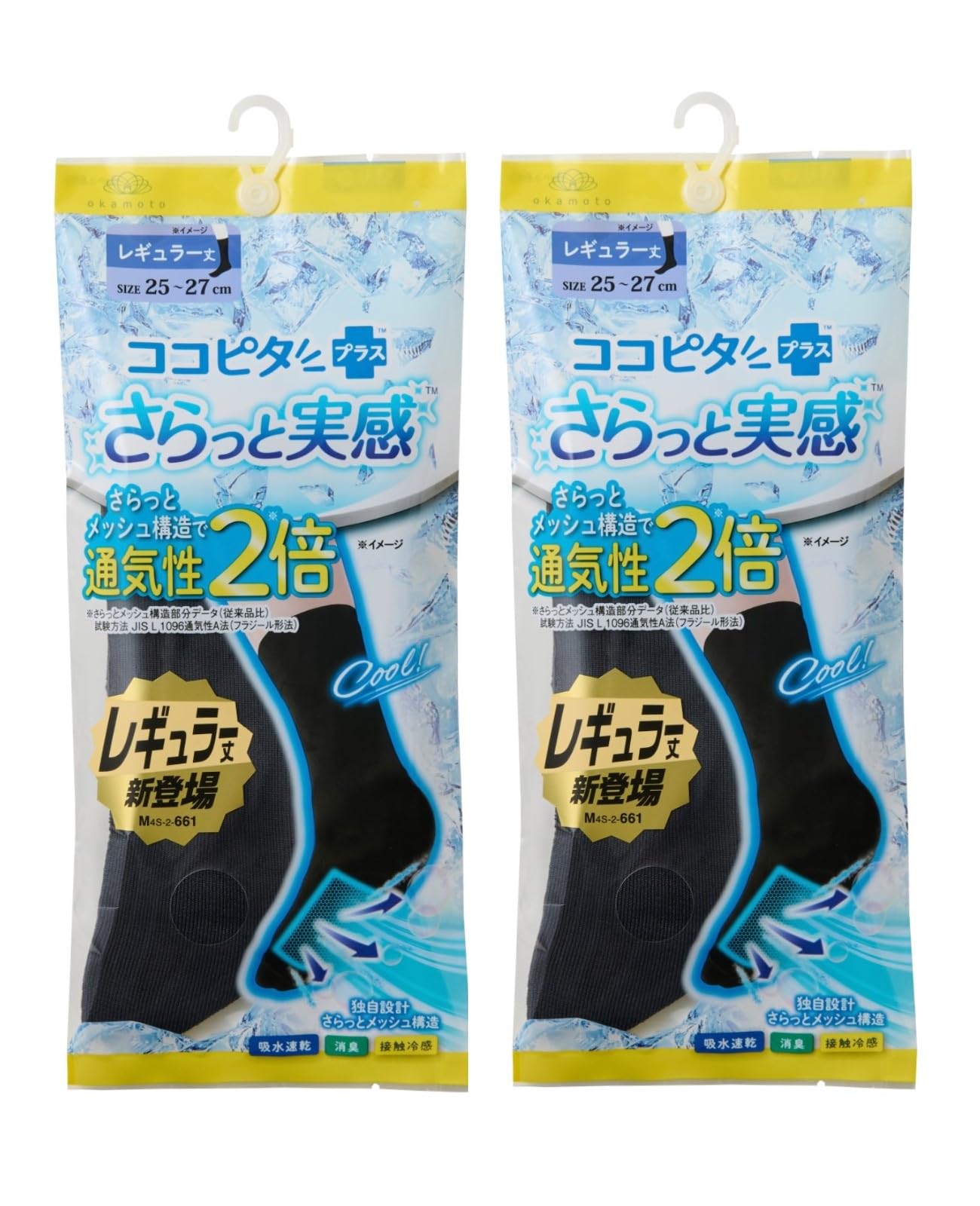 [オカモト] ココピタ さらっと実感 クルー丈 メンズ 靴下 メッシュ 接触冷感 消臭 676-901