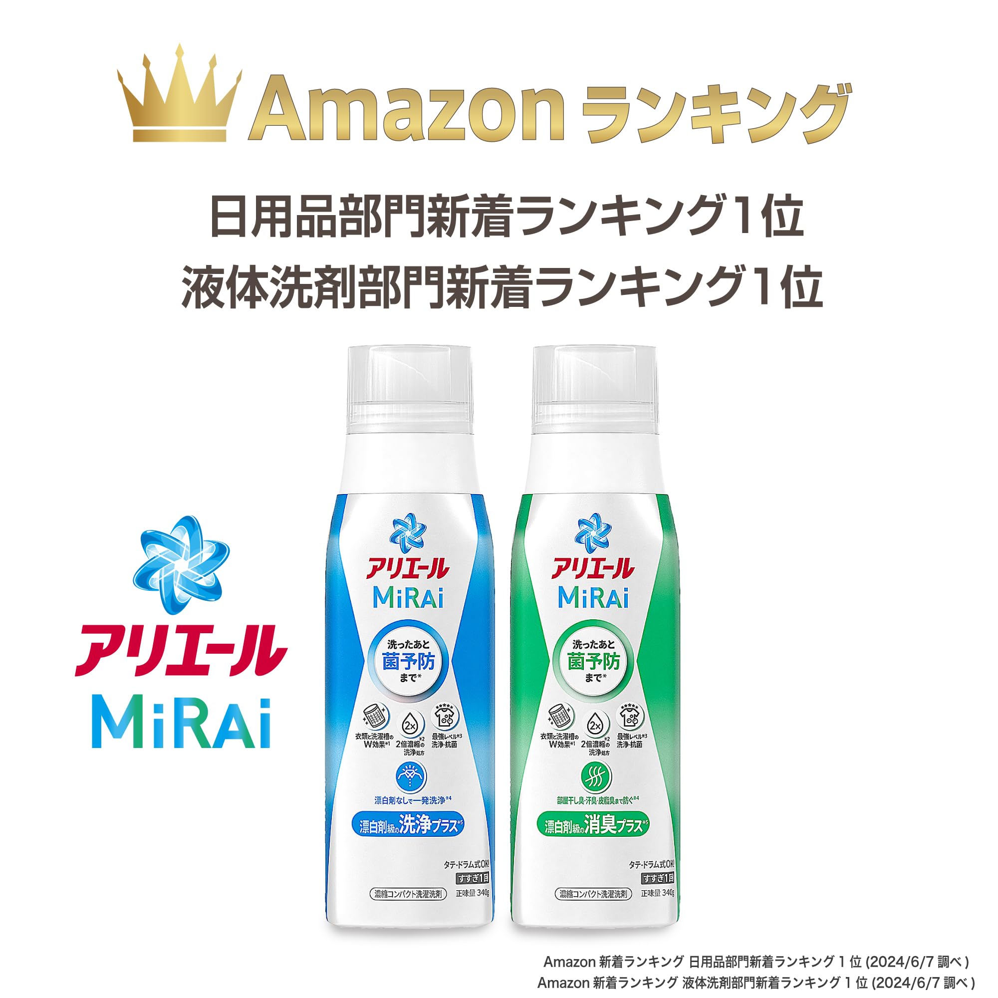 アリエール MiRAi 洗濯洗剤 漂白剤級の消臭プラス*