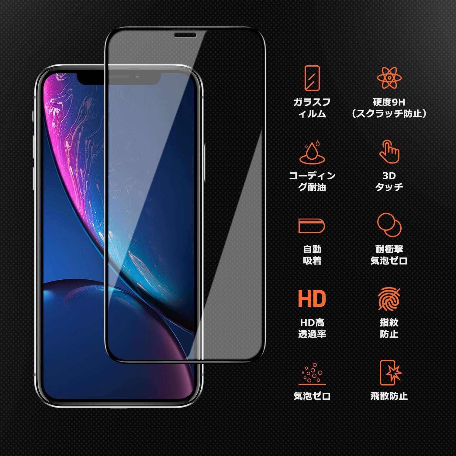 【2枚セット】 iPhone 11 / iPhone XR ガラスフイルム iPhone XR 強化ガラス【日本製素材旭硝子製】 6Dラウンドエッジ加工/業界最高硬度9H/高透過率/3D Touch対応/自動吸着/気泡ゼロ アイフォンXR ガラスフィルム アイフォンXR 全面保護 iPhone 10強化ガラス液晶保護フイルム 全面フイルムカバー 6.1インチ対応 ブラック