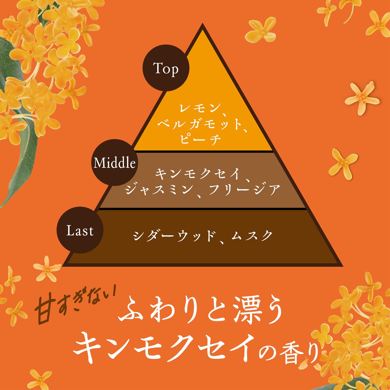 ミドルはキンモクセイを基調としたフローラルブーケが華やかに香ります。