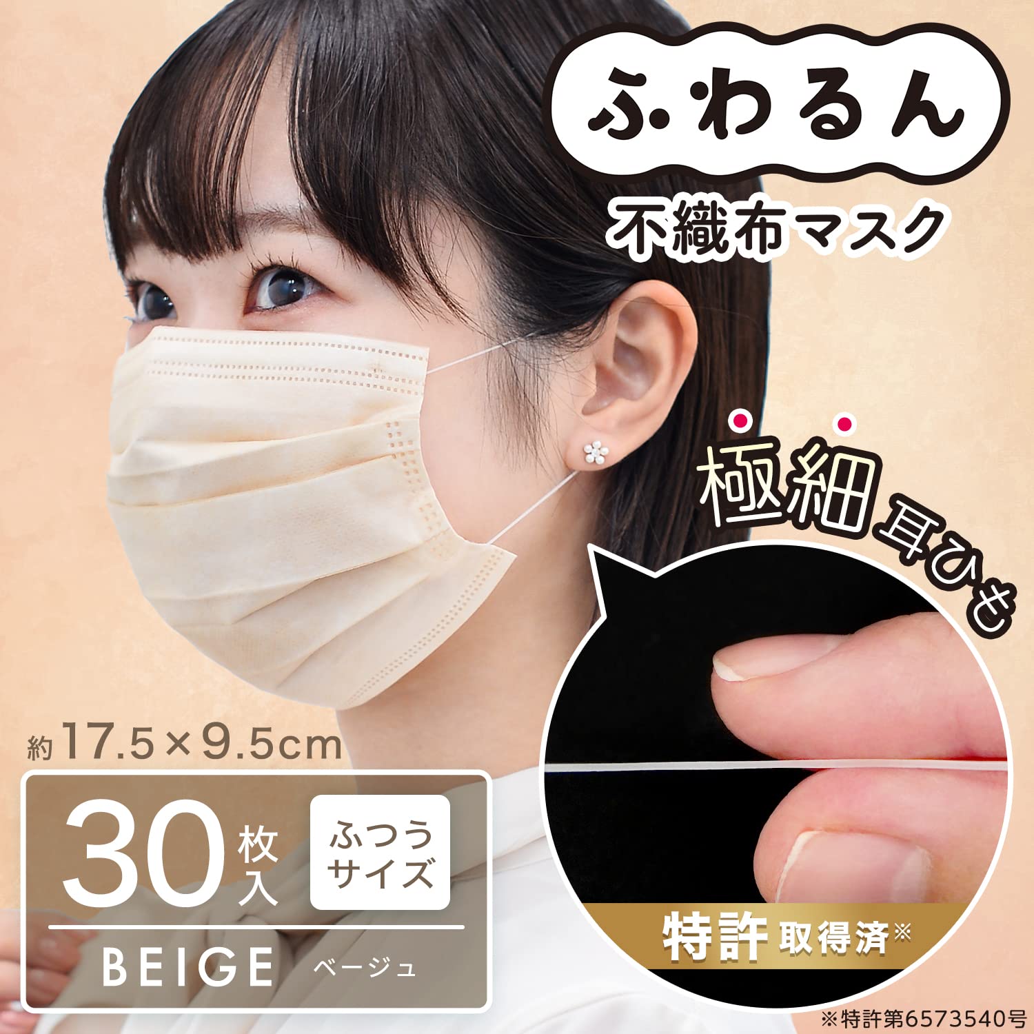レック(LEC) 極細耳ひも マスク ふわるん ( ふつうサイズ 30枚入 ) 1箱 ベージュ / 体温でやわらかくなり 耳が痛くなりにくい /