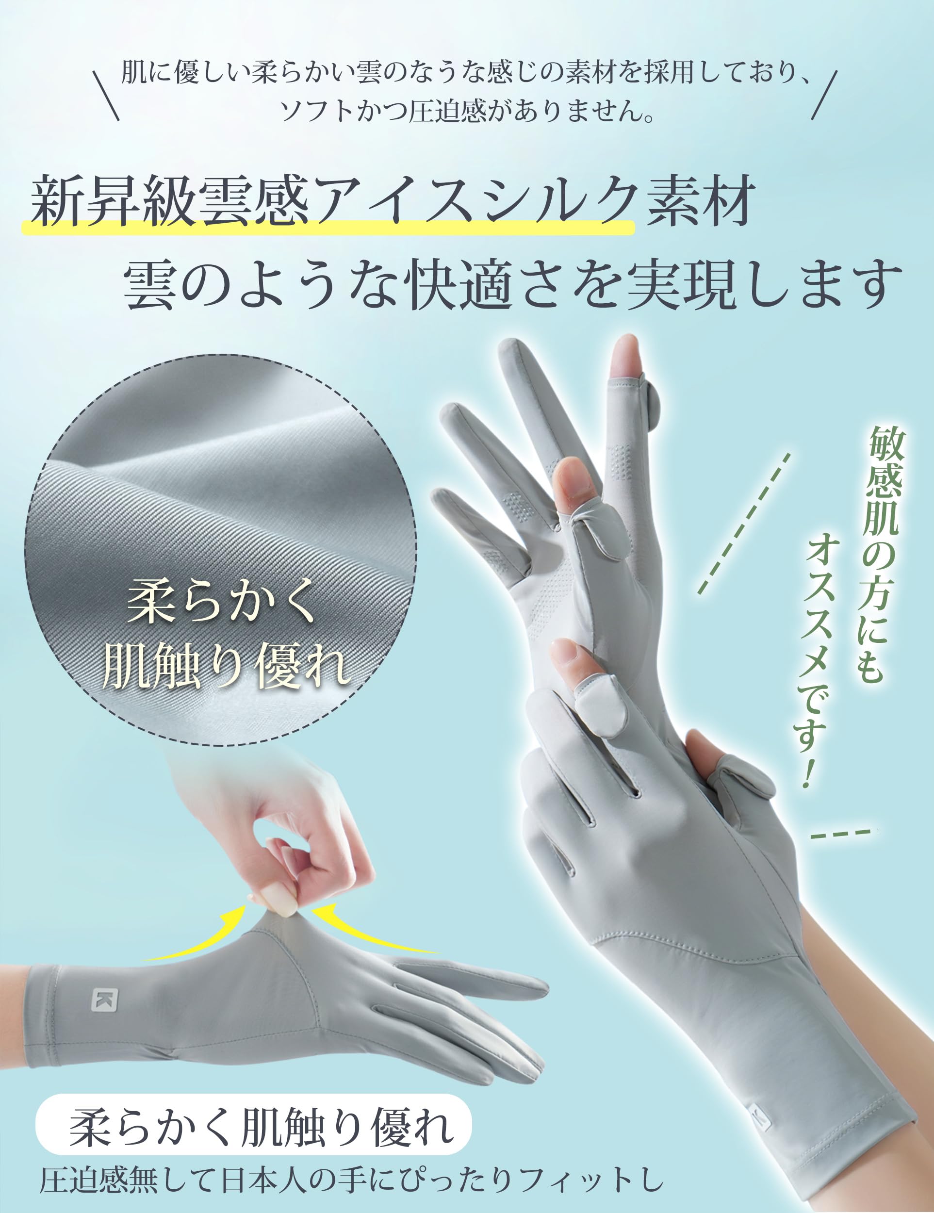 [PALAME] 手袋 レディース UVカット 夏 【雲感アイスシルク素材・-5℃冷感・UPF50+認定品】 春 秋 UV手袋 2本指出し 細かい作業 紫外線対策 日焼け防止 極薄 軽量 通気性 速乾性 グローブ 通勤・自転車・運転用