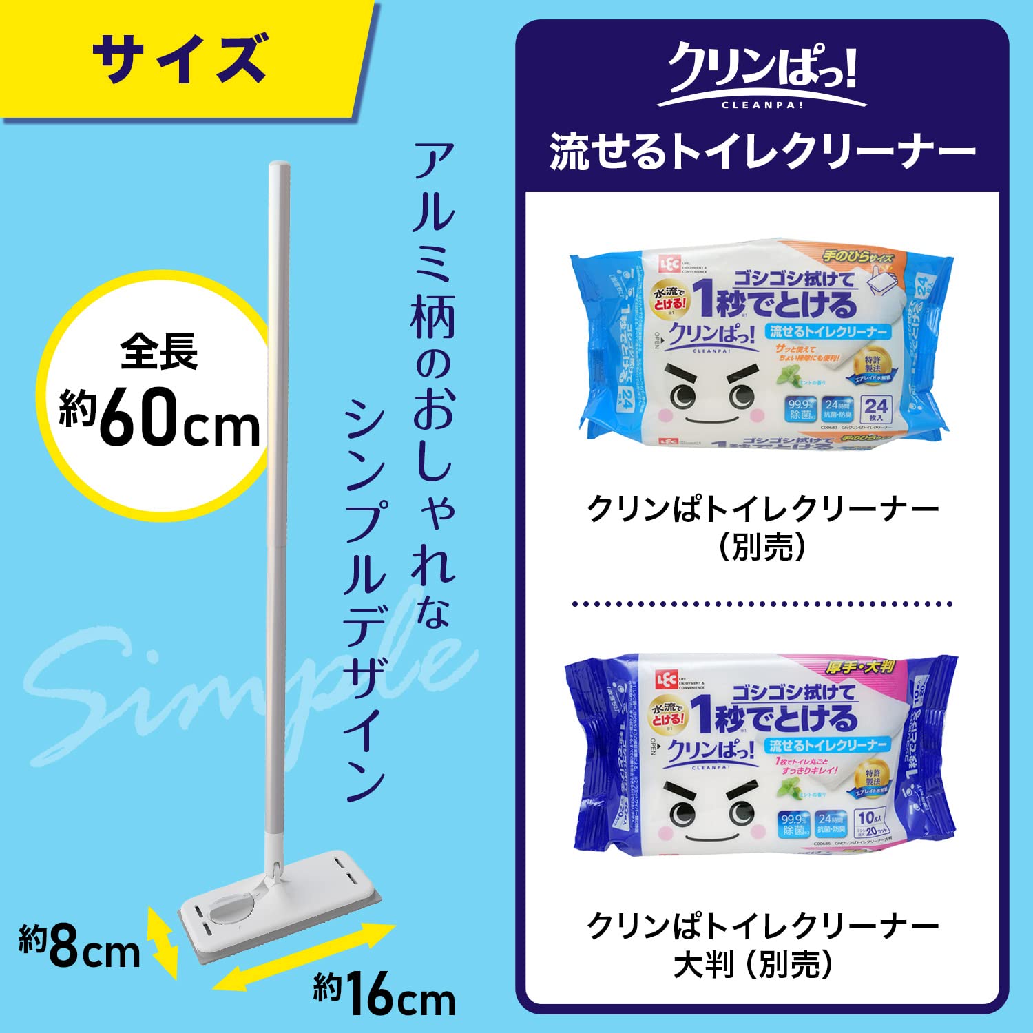 ●トイレ床用のおそうじワイパーです。●便器まわりはもちろん、奥にも届く床用ミニワイパーです。●シートの付け外しはワンタッチ、使用後のトイレシートに触れずに流すことができます。●各社のトイレシートが使えます(推奨サイズ:約12×18cm以上)です。●全長60cmです。●床に手をつくことなく立ったままお掃除できます。●アルミ柄のスッキリとしたデザインです。●サッと使えるのでちょい掃除にも便利です。