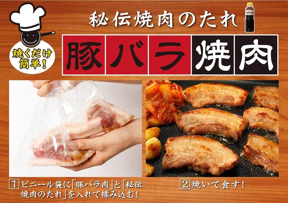 しょうゆをベースに、にんにく・玉ねぎ・生姜の香味野菜とりんごを使用し、ごま油で風味良く仕上げた、焼肉屋さんの秘伝のたれです。
