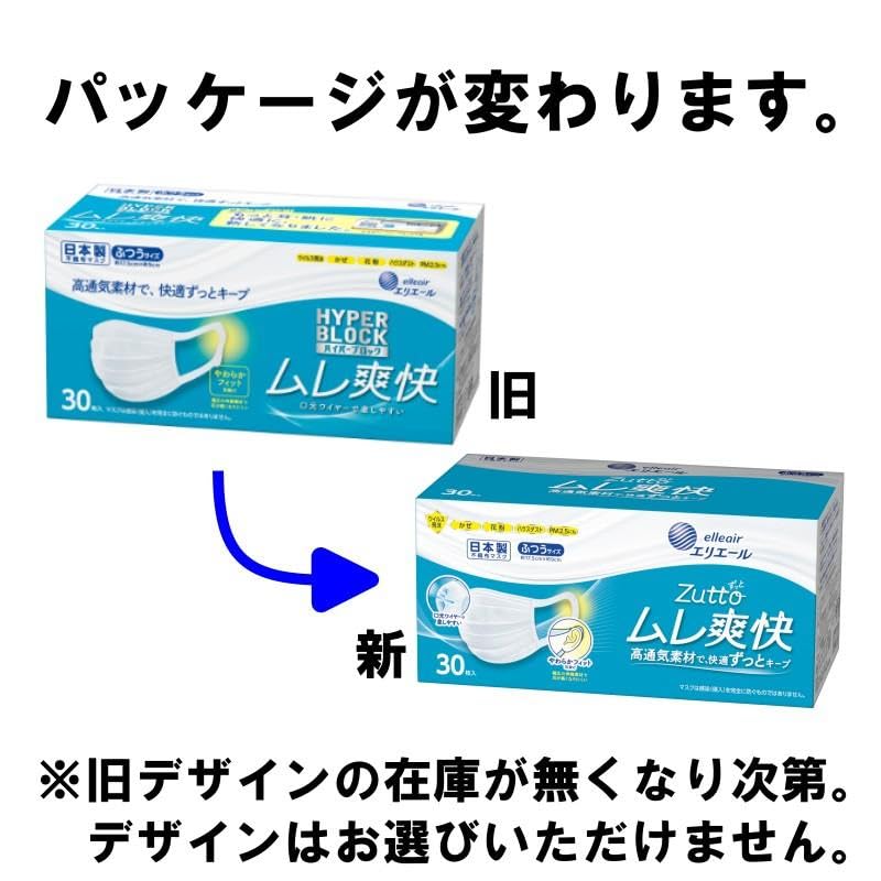 マスク 日本製 不織布マスク ムレにくい 高通気 飛沫対策 花粉 pm2.5 99%カットフィルター ハイパーブロックマスク ムレ爽快 30枚 2個セット (ふつう)