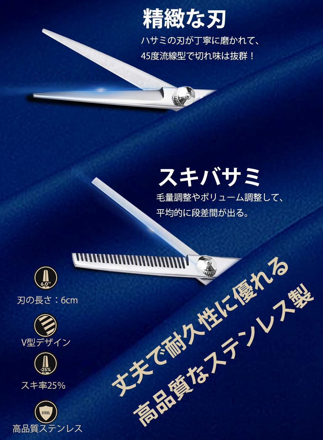 頑丈、切れ味抜群、耐久 特級ステンレス製のカットシザー、手仕上げすることで、刃の保持力を向上できることで、耐久性がある優れた品質です
