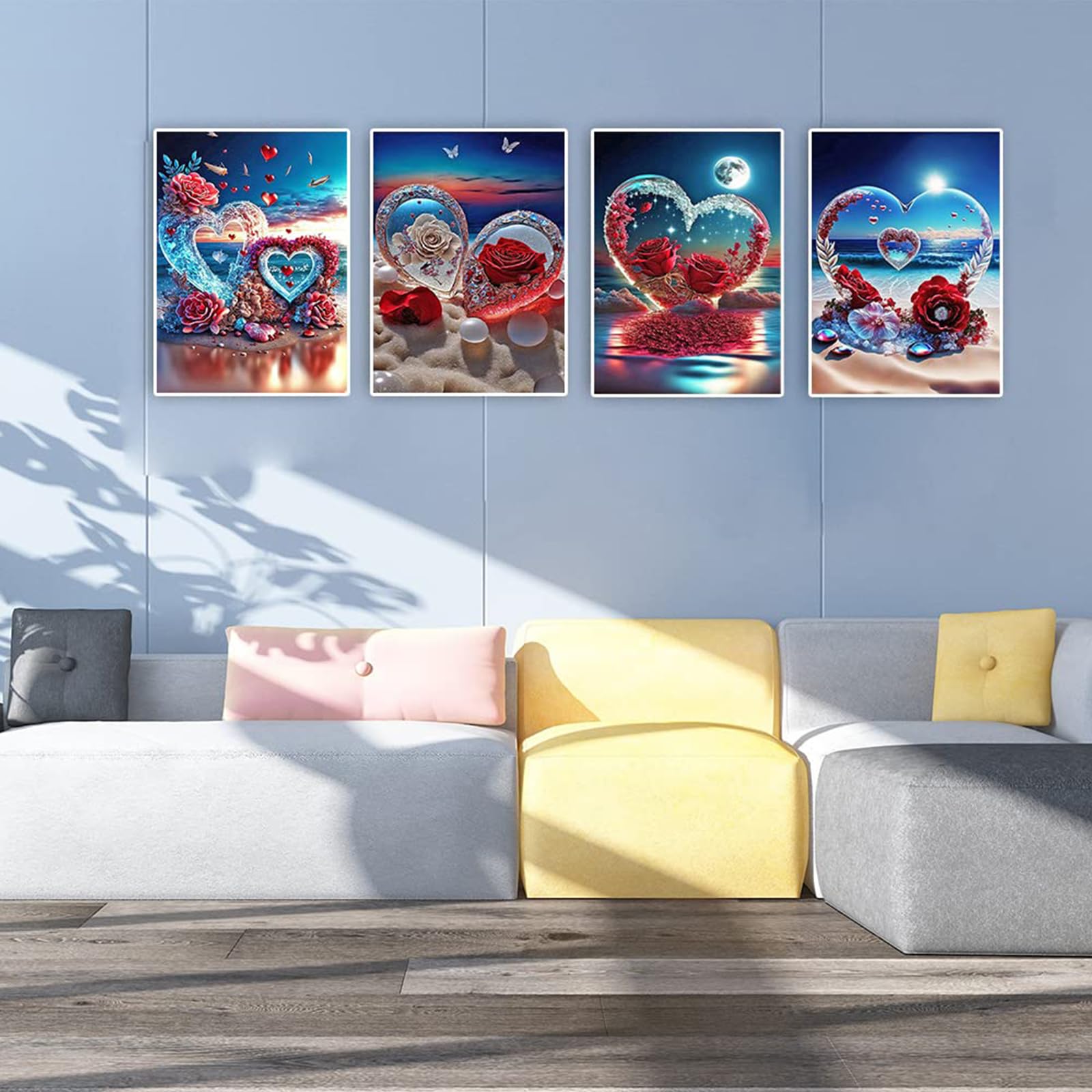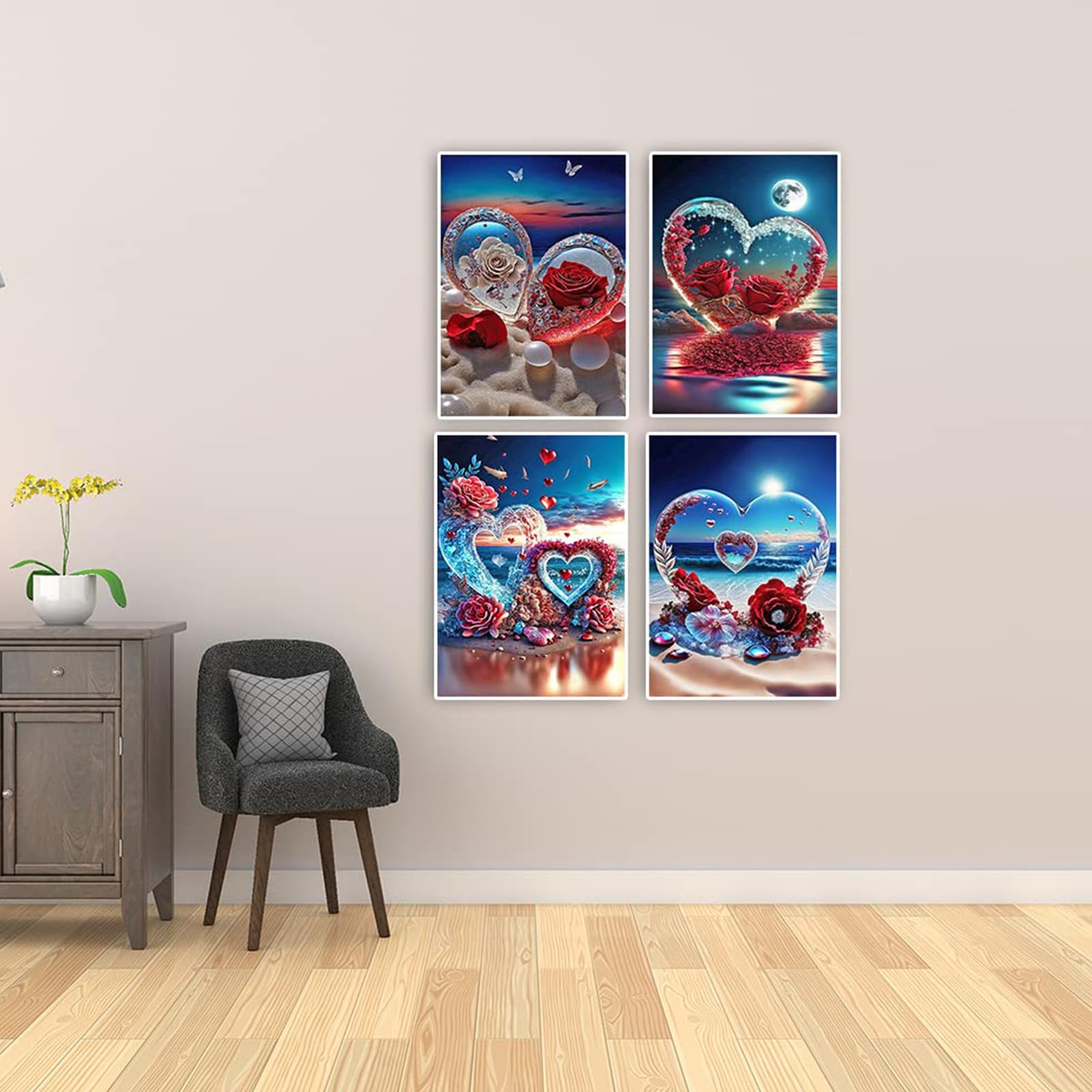 JISHSHAY ダイヤモンドアート キット 4枚セット 30x40cm ダイヤモンドアート バラ ビーズアート ダイヤモンドアート ビーチ ダイヤモンドペインティング ロマンチックな心 ダイヤモンドアート ガラスビーズ 手芸キット ビーズアート 上級者 ダイヤモンドアート 月