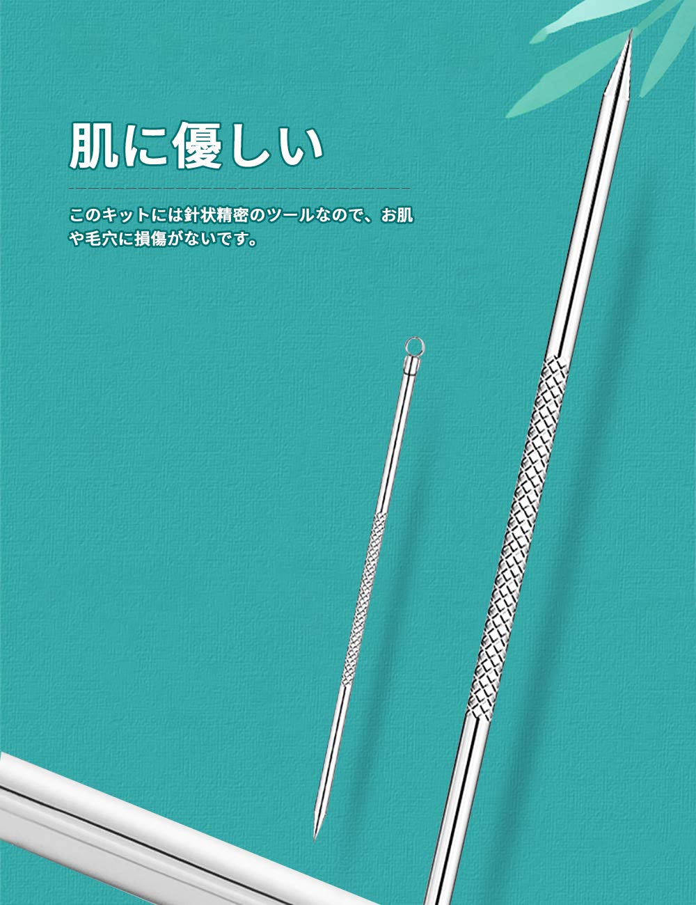 【5本セット】ニキビ取りツールは色々な用途に適しています。顔、鼻周りなどの角栓、黒ニキビ、白ニキビの除去に使用する専用スティックセットです。ニキビや黒ずみだけでなく、毛抜きとしても使用できます。
