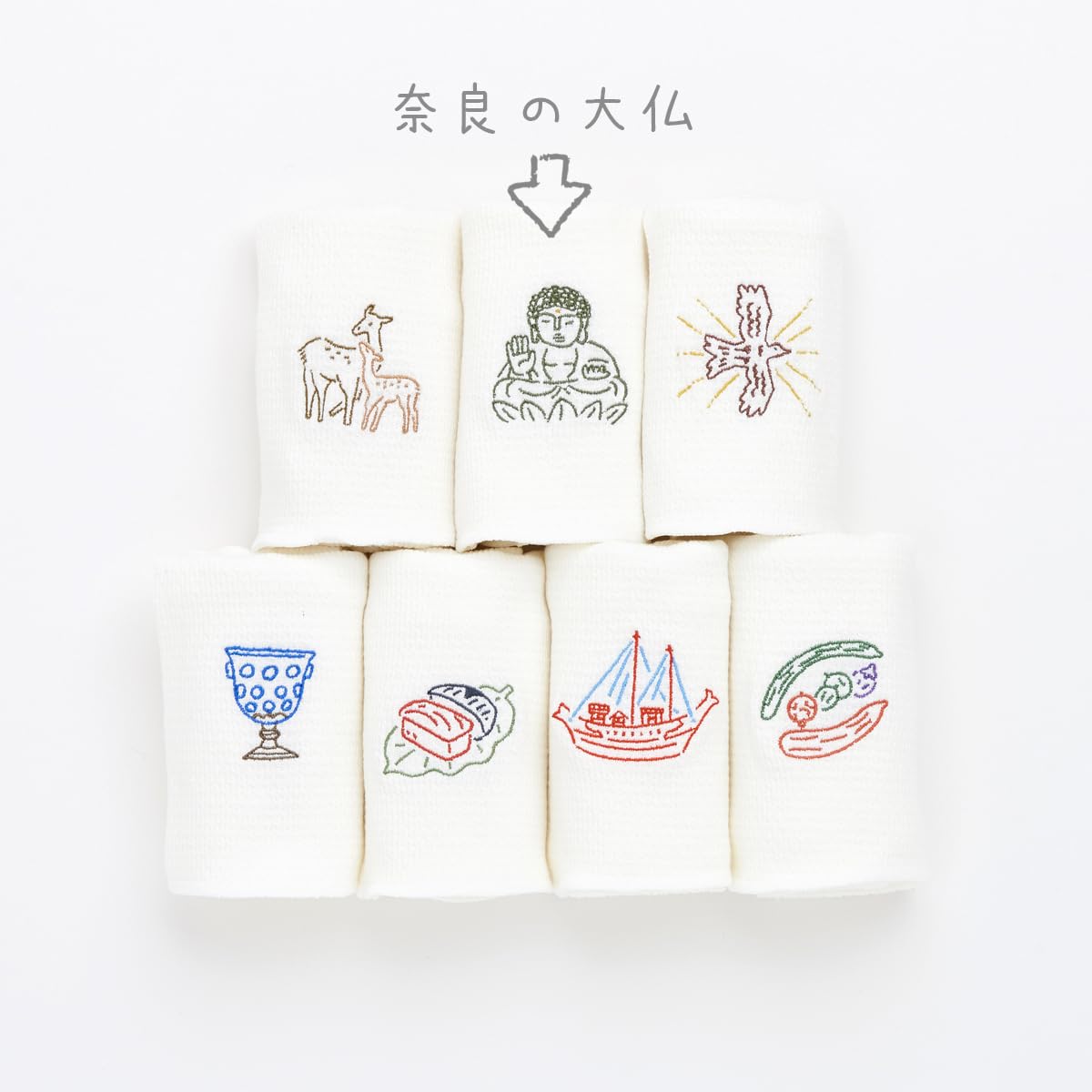 奈良にゆかりのあるかわいいワンポイントを「お守り刺繍」として施しています。