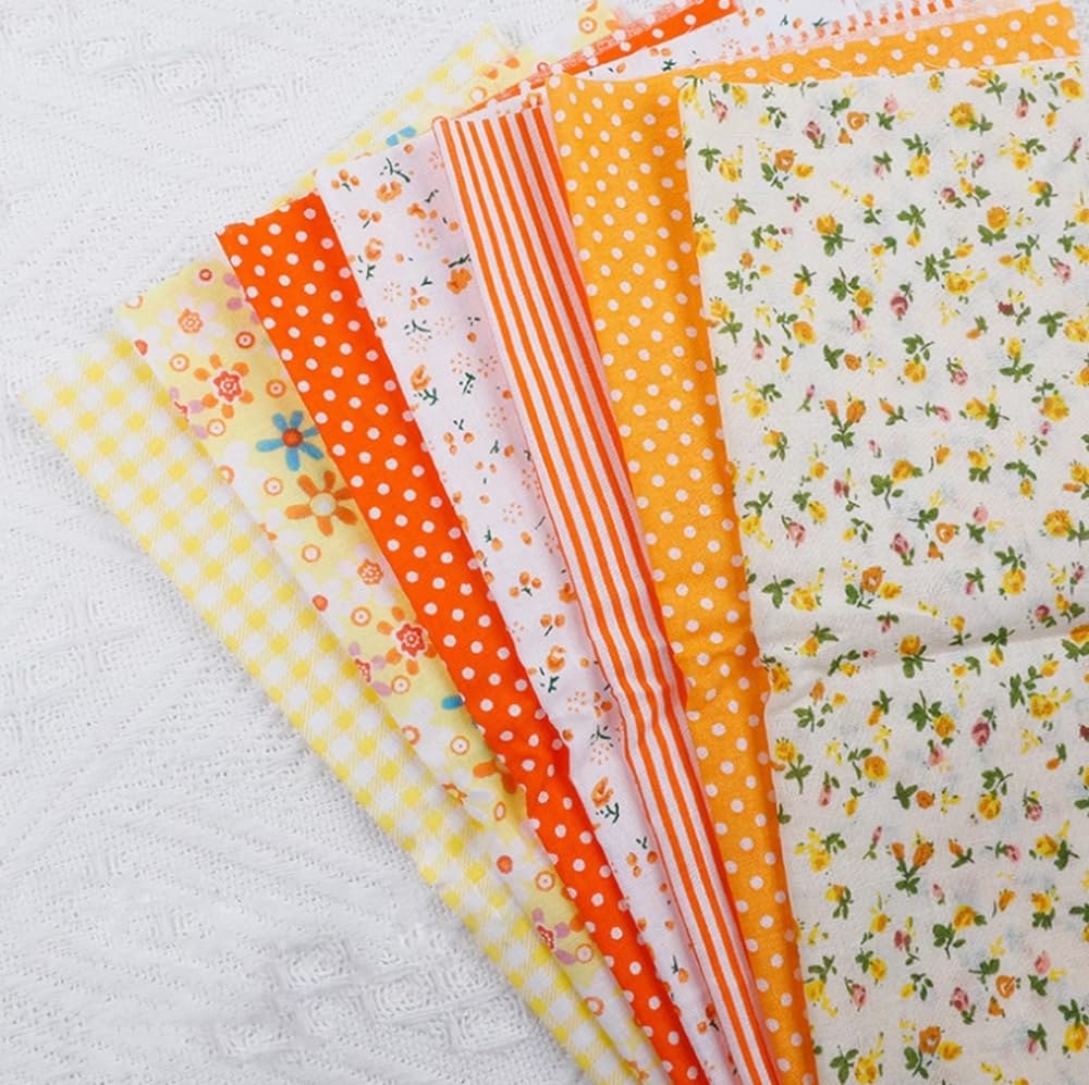 サムコス 7枚図案セット 生地 布 50*50cm 花柄 パッチワーク布 カットクロス 綿 DIY手芸用 ハンドメイド 小花 はぎれ 花 縫う手作り パッチワー 室内装飾 (イエロー)