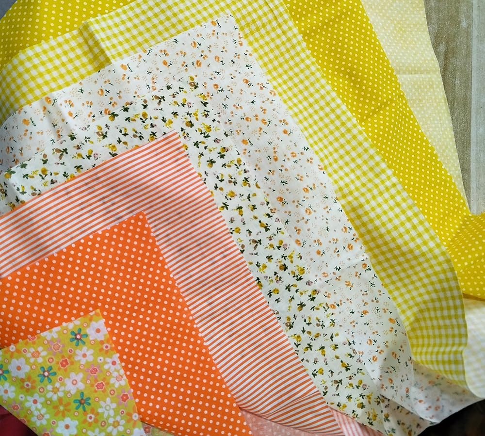 【特価処分】サムコス 7枚図案セット 生地 布 50*50cm 花柄 パッチワーク布 カットクロス 綿 DIY手芸用 ハンドメイド 小花 はぎれ 花 縫う手作り パッチワー 室内装飾 (イエロー)