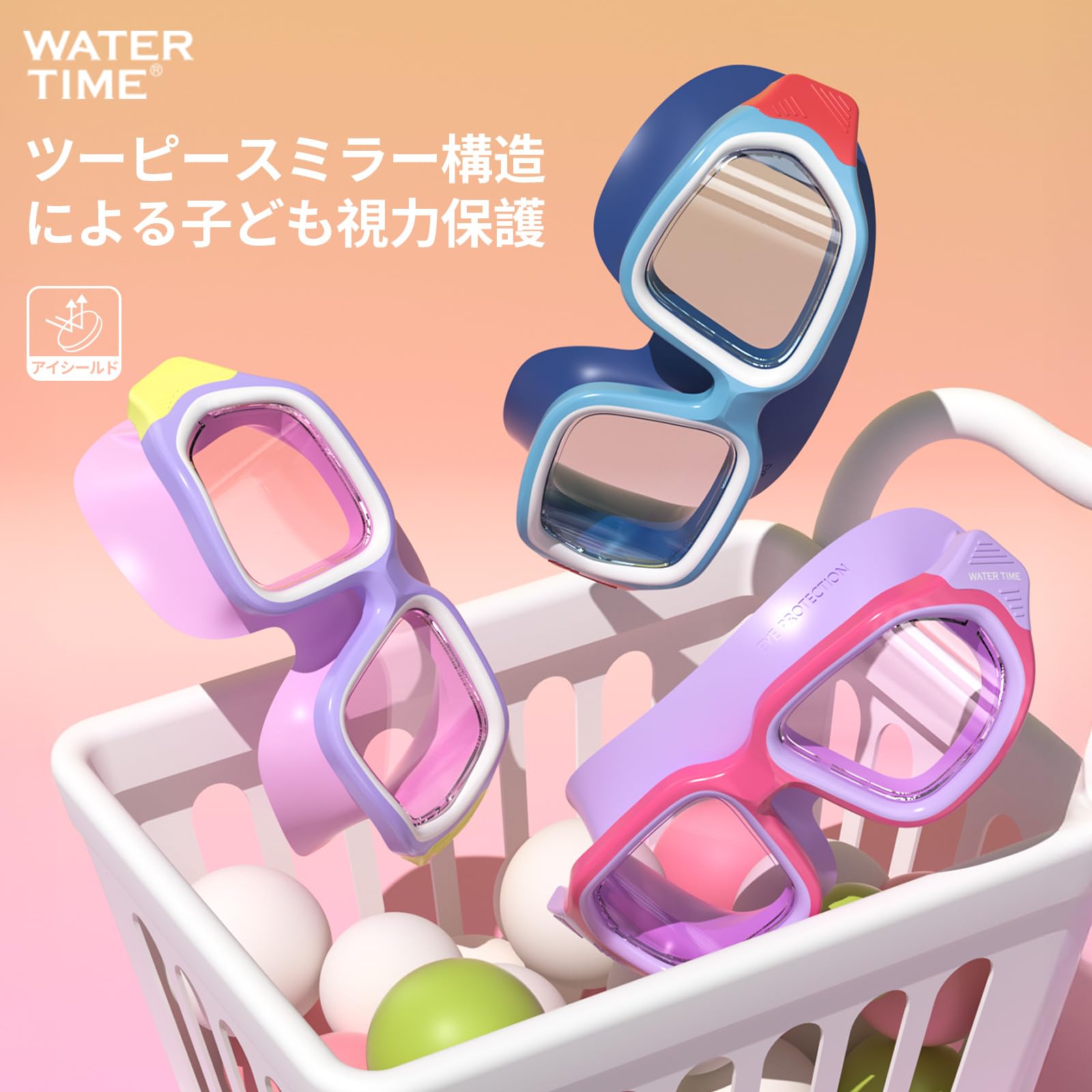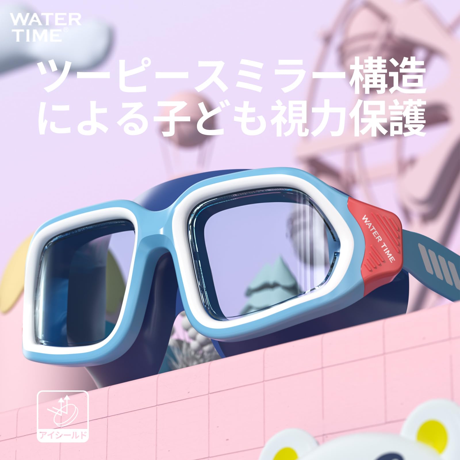 WATERTIME ゴーグル 小学生子供用 4歳~12歳 紫外線カット高品位目保護大枠スイミングレンズ