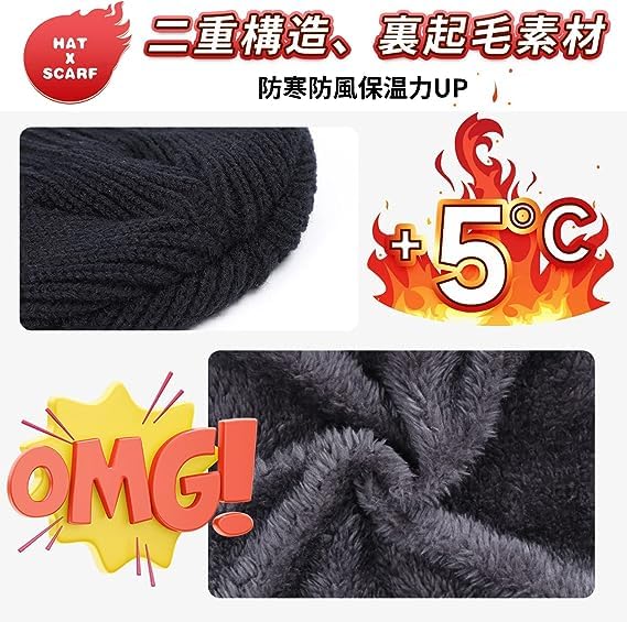 防寒効果抜群なニット帽&ネックウォーマー 2点セット