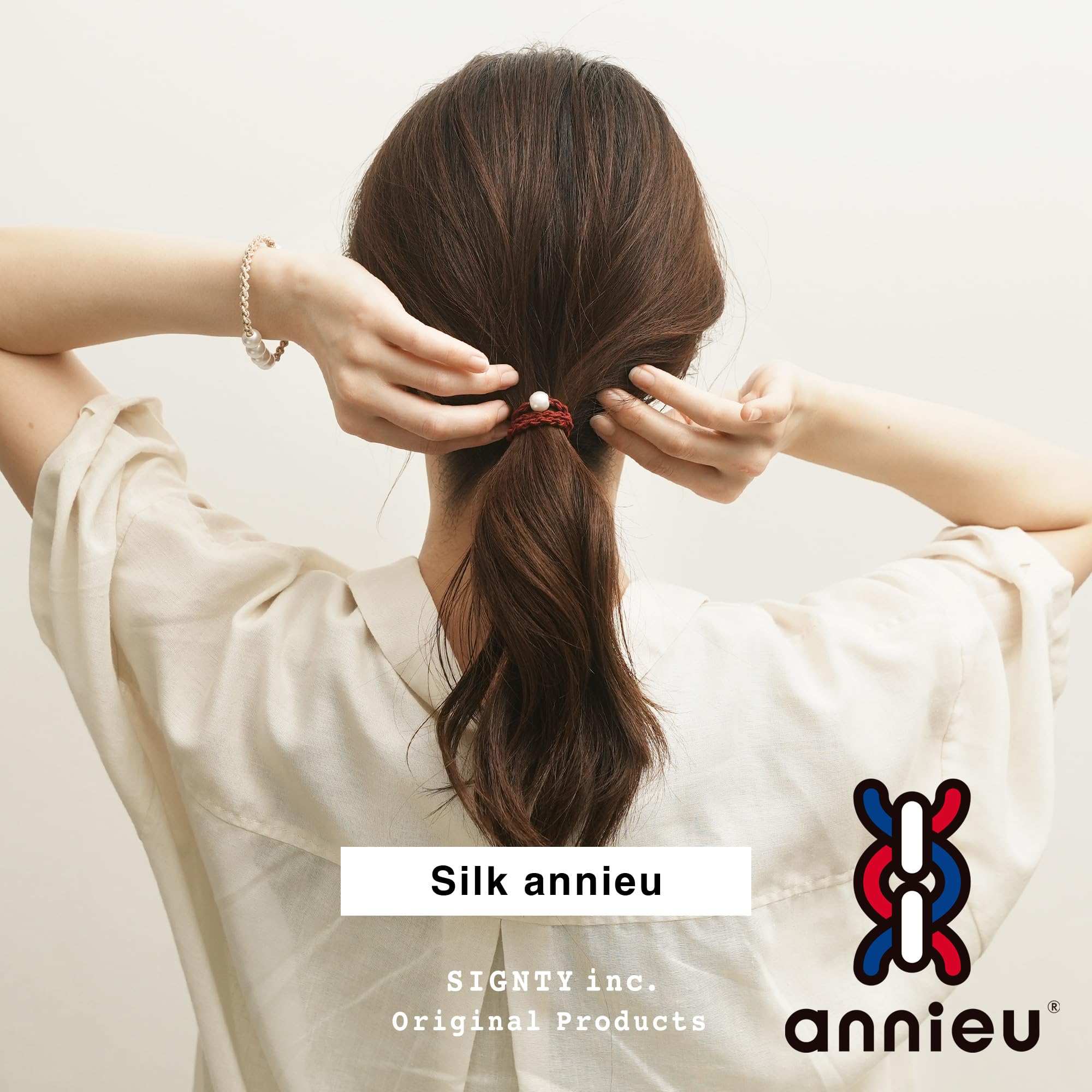 annieu シルク・ヘアゴム セット|ヘアアクセサリー/ブレスレット/アンニュ / シルク100% / パール【美容師考案】 (シルクレッドセット)