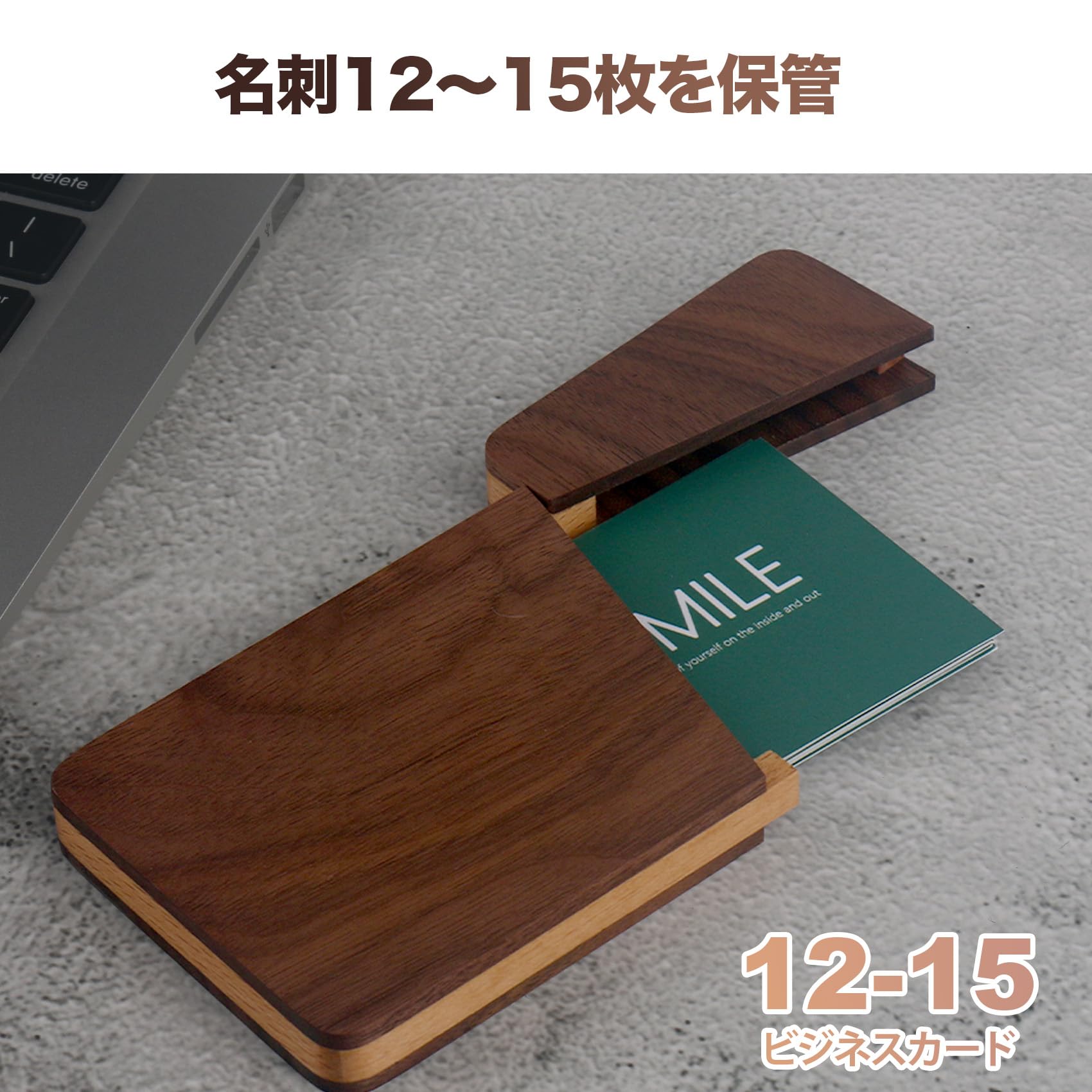【良い素材】質高いナチュラルなウォールナットとブナで作られた名刺入れです.天然木材を使用し、化学的な添加物なし。安心してお使いいただけます。