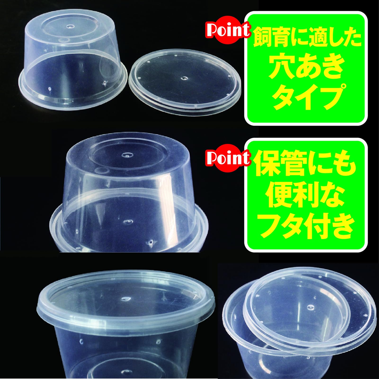 穴あきタイプなので、昆虫の卵や幼虫などの生体の飼育に適しています。ふた付きなので、保管にも便利!