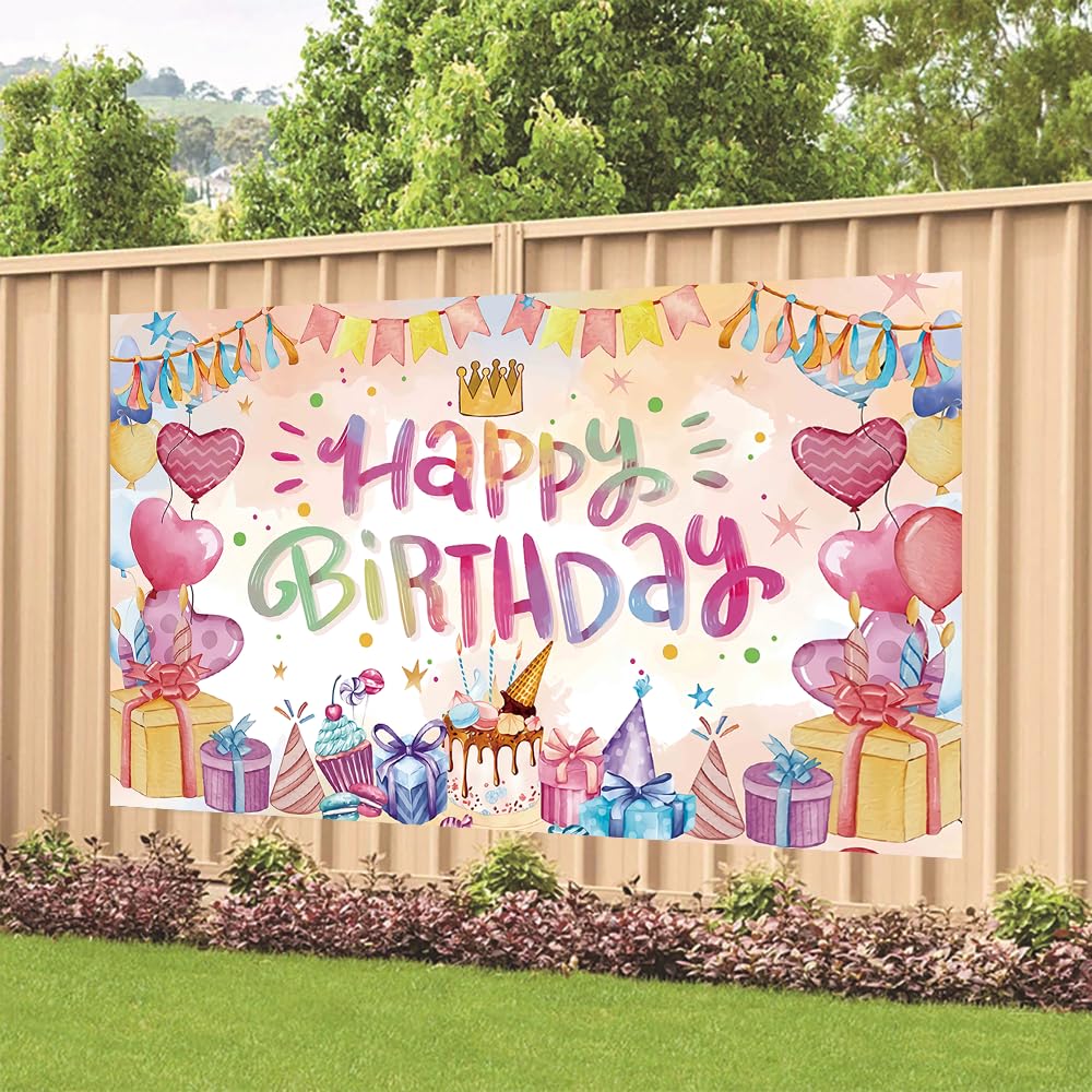 【高品質の素材】軽くて扱いやすいポリエステル生地、耐久性抜群、耐水性強く、折り目がつきにくいです。オリジナルデザインで毎年使えるハート誕生日タペストリーです。