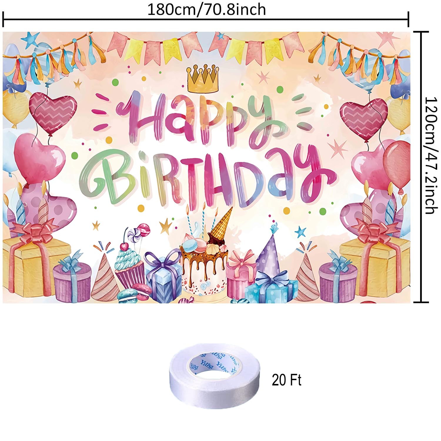 【新着特価】ハート バースデー タペストリー ハート 誕生日 飾り付け タペストリー おしゃれ 誕生日 壁掛け 写真背景 ハート Happy Birthday パーティー フォトポスター 女の子 おうちスタジオ 180x120cm