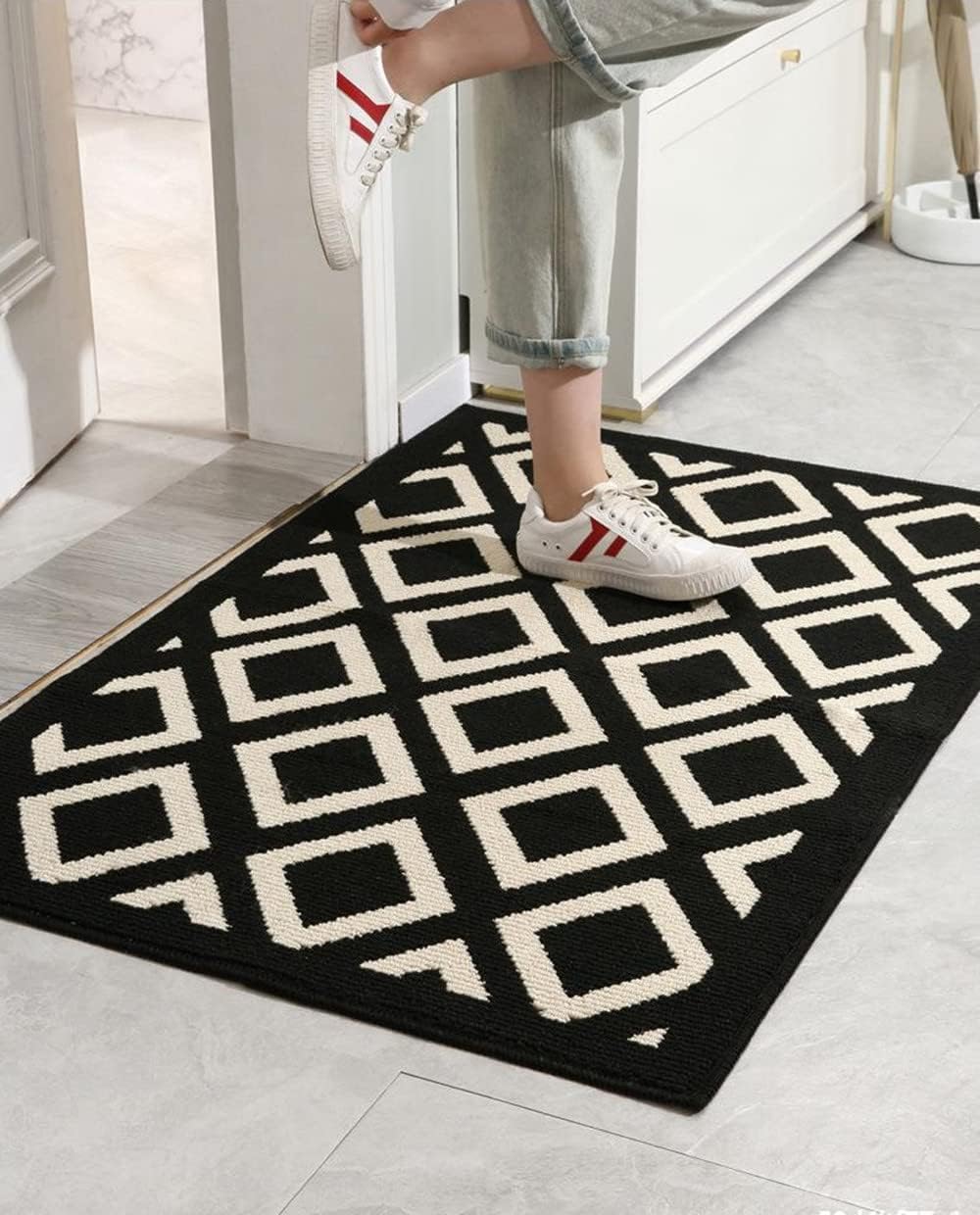 玄関マット ドアマット カーペット 室内 屋外マット おしゃれ シンプル 泥落としマット 泥除けドアマット 泥落とし 泥除け 砂落とし 洗える 滑り止め 防音 吸水 業務用 家庭用 店舗 オフィス 事務所 庭 50x80cm ブラックxベ一ジュ