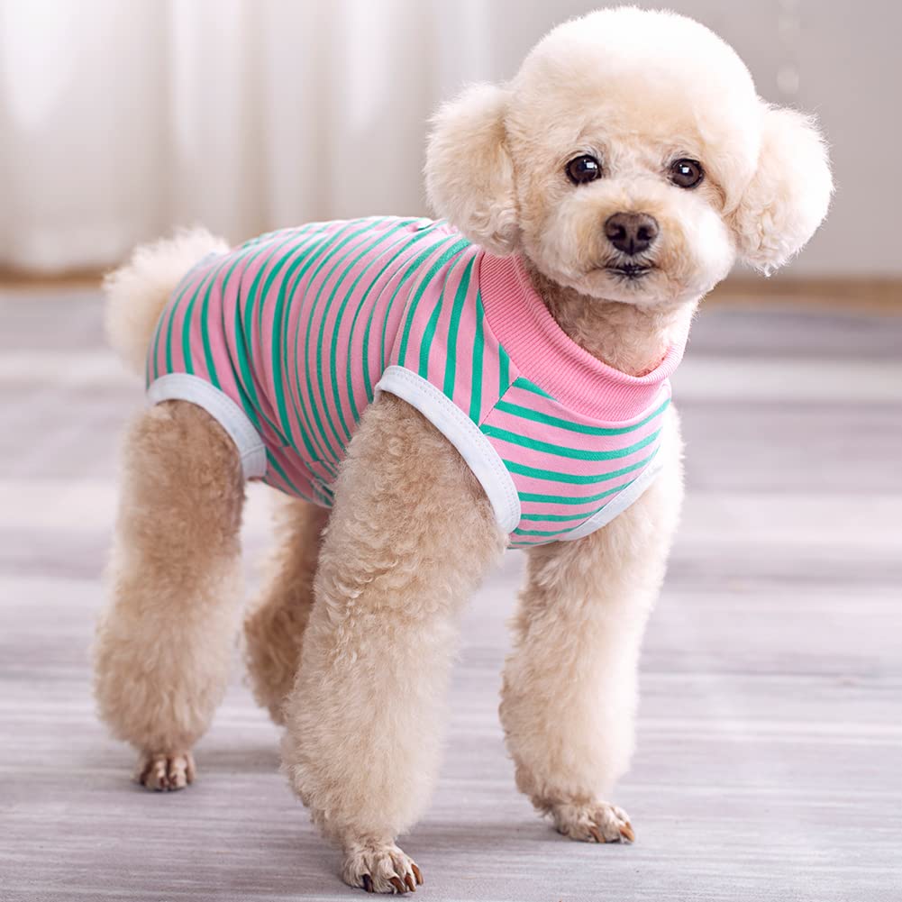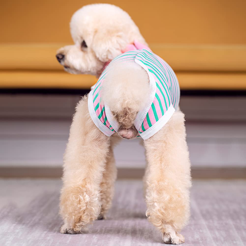 PET 術後服 犬服 猫 犬術後服 術後ウェア 術後カバー服 保護服 介護服 避妊 離乳 傷口保護 皮膚病 小型犬 中型犬(ピンク+グリーン XS)
