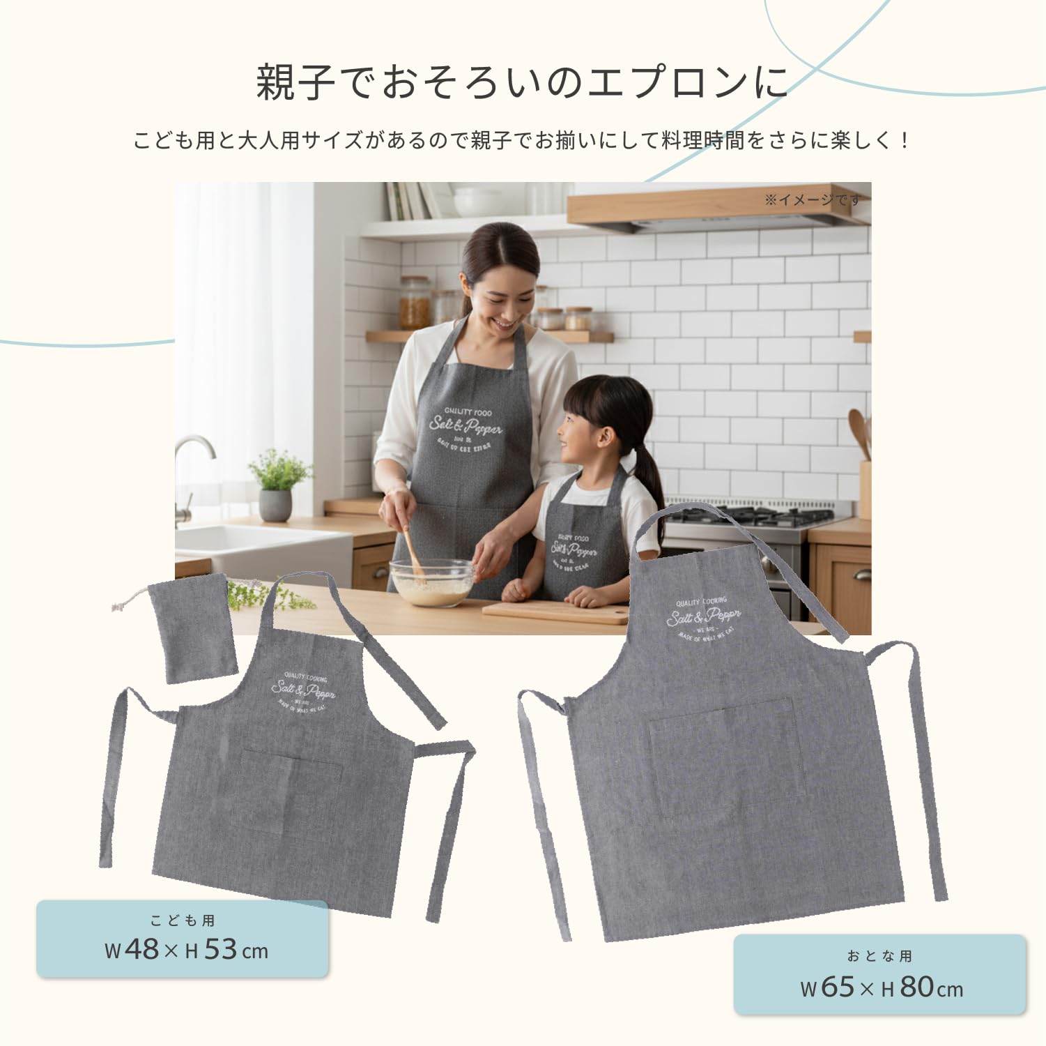 不二貿易 エプロン 幅65×厚み0.2×縦80㎝ チャコール 丸洗い可能 3段階調節 ポケット付き カフェ風 Salt&Pepper 71950