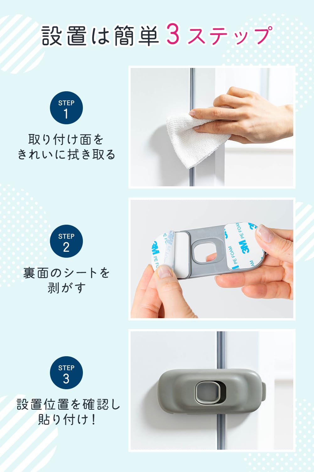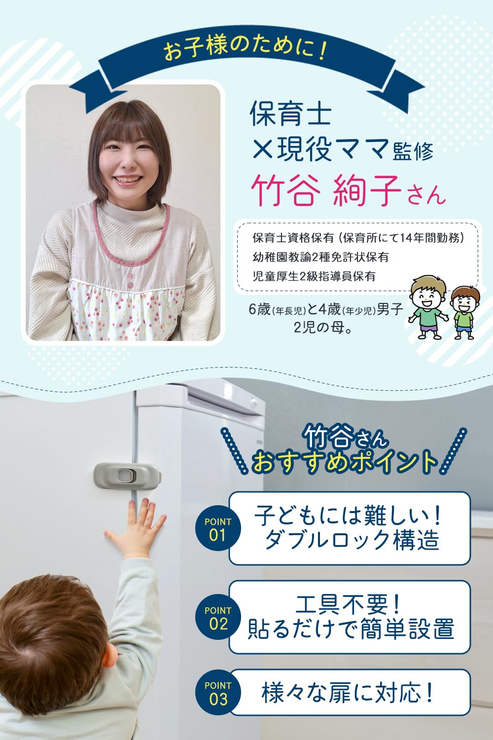 冷蔵庫ロック チャイルドロック 【保育士×現役ママさん監修】ダブルロックで子どものいたずら防止にx設置は貼るだけ RIMA RUHE (ホワイト)