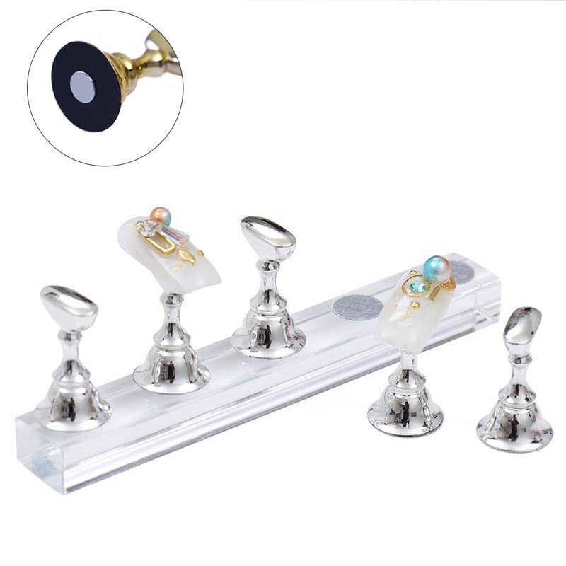 【在庫処分】【BEAUTY PLAYER】ネイルスタンド チップスタンド ネイル 台座 磁気 アクリルマニキュア工具 ネイル練習 粘土で固定 ネイル用品 ネイルチップ スタンド ディスプレイ 5本セット (シルバー)