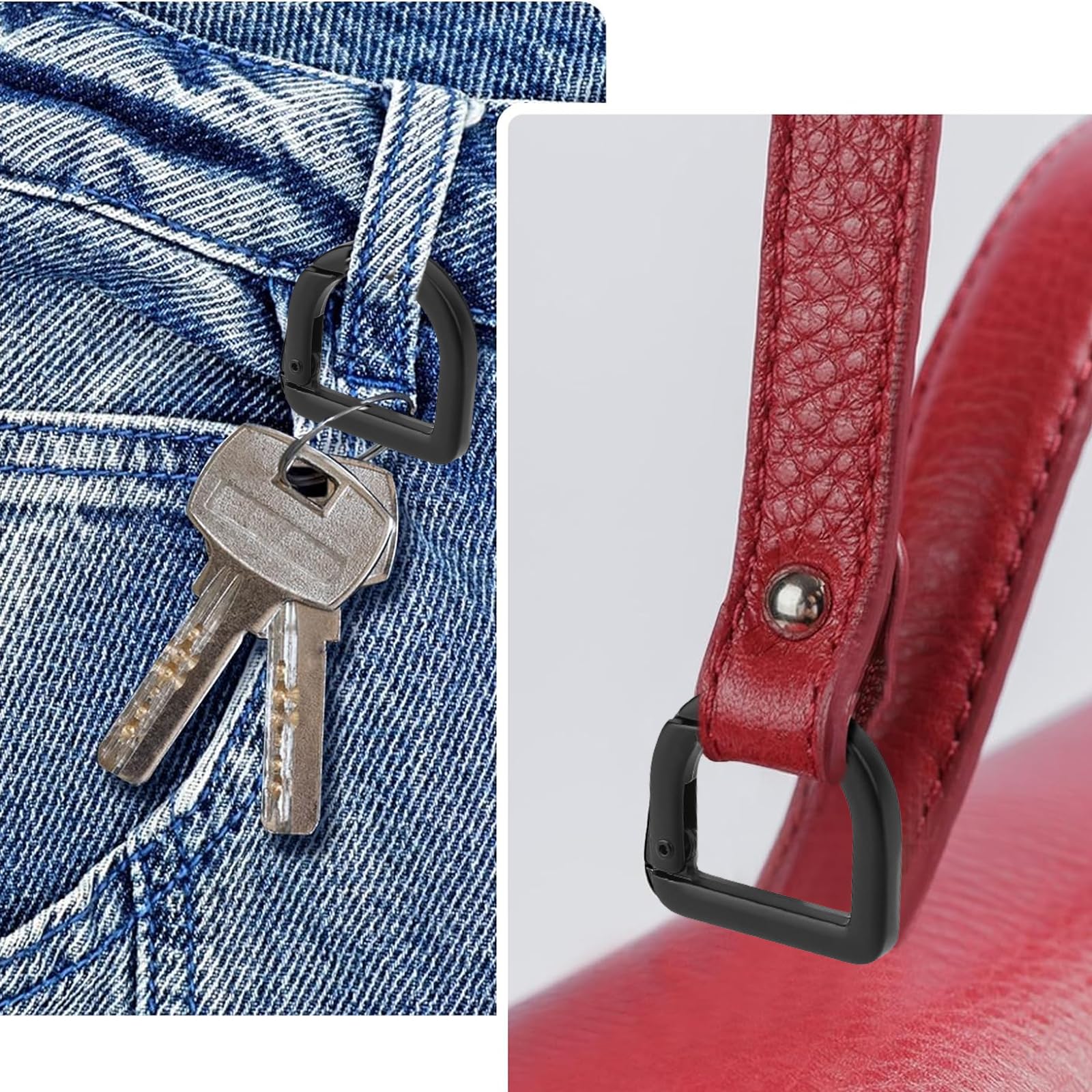 【信頼性の高い材質】Dリングバックルは金属材料で作られ、Dリングスプリングキーホルダーの表面は滑らかで、装着しにくく、長時間使用できる。