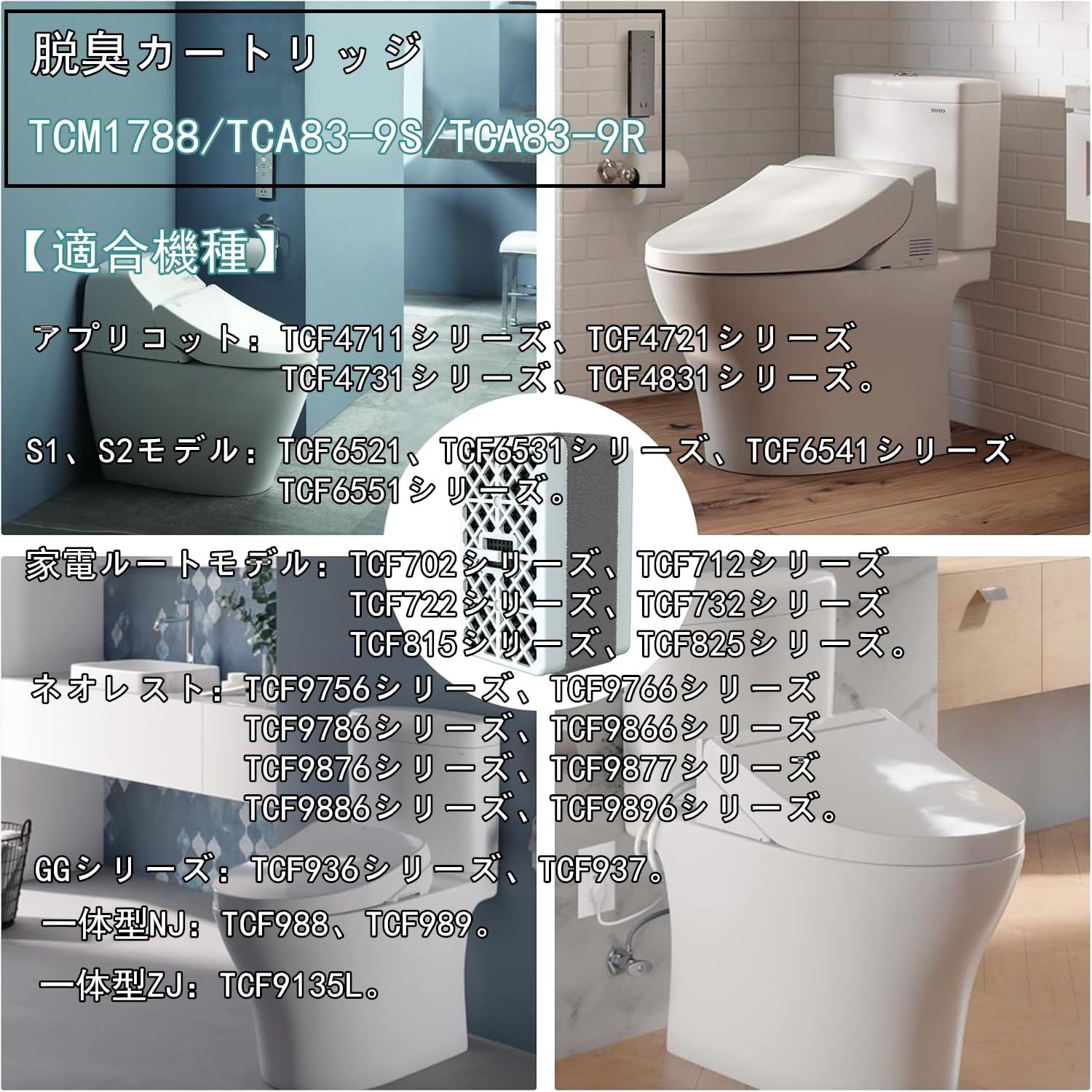 【人気】脱臭カートリッジ TCM1788 【2個入】 TCA83-9S TCA83-9R に対応 ウォシュレット用触媒組品 本体: 奥行6.2cm 本体: 高さ2.4cm 本体: 幅3.8cm (2個入り)