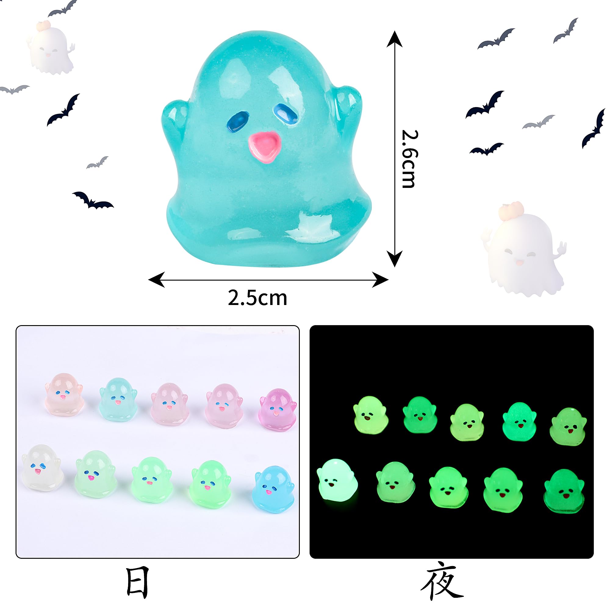 材料:ミニ樹脂発光小さな幽霊は硬質樹脂でできていて、耐水性、軽量、持ち運びに便利です。