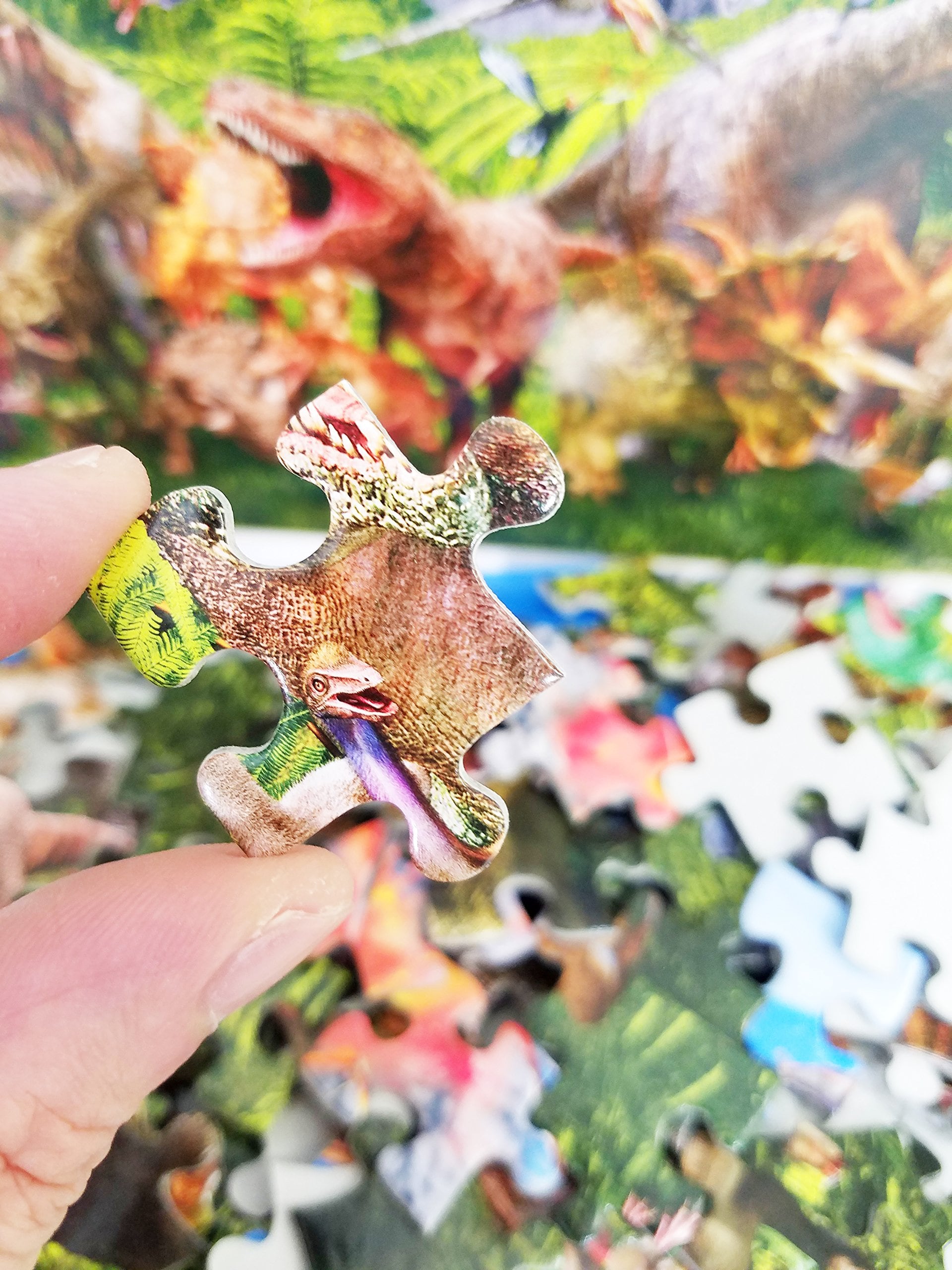 大迫力のアートで恐竜たちの生き生きとした姿が学べる!パッケージの裏面には絵柄に登場する恐竜を解説!!