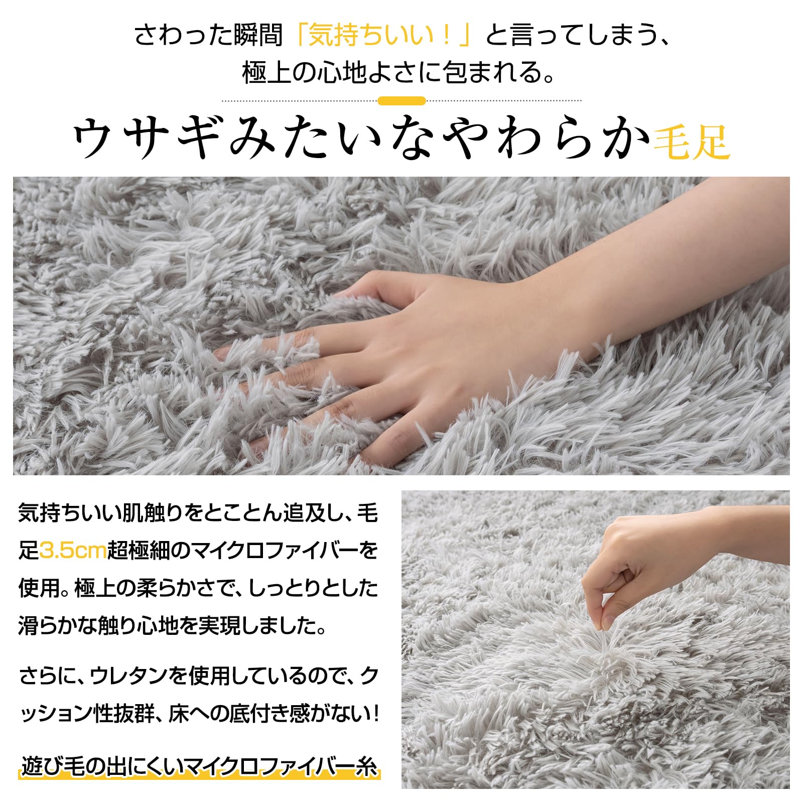 【ふわふわ柔らかな肌触り】カーペット表面の生地は上質なポリエステルを採用し、色褪せず繊細でやわらかな肌触りを実現しました。ふわふわというよりも、しっとりなめらかな触り心地とゴージャスな見た目が魅力。
