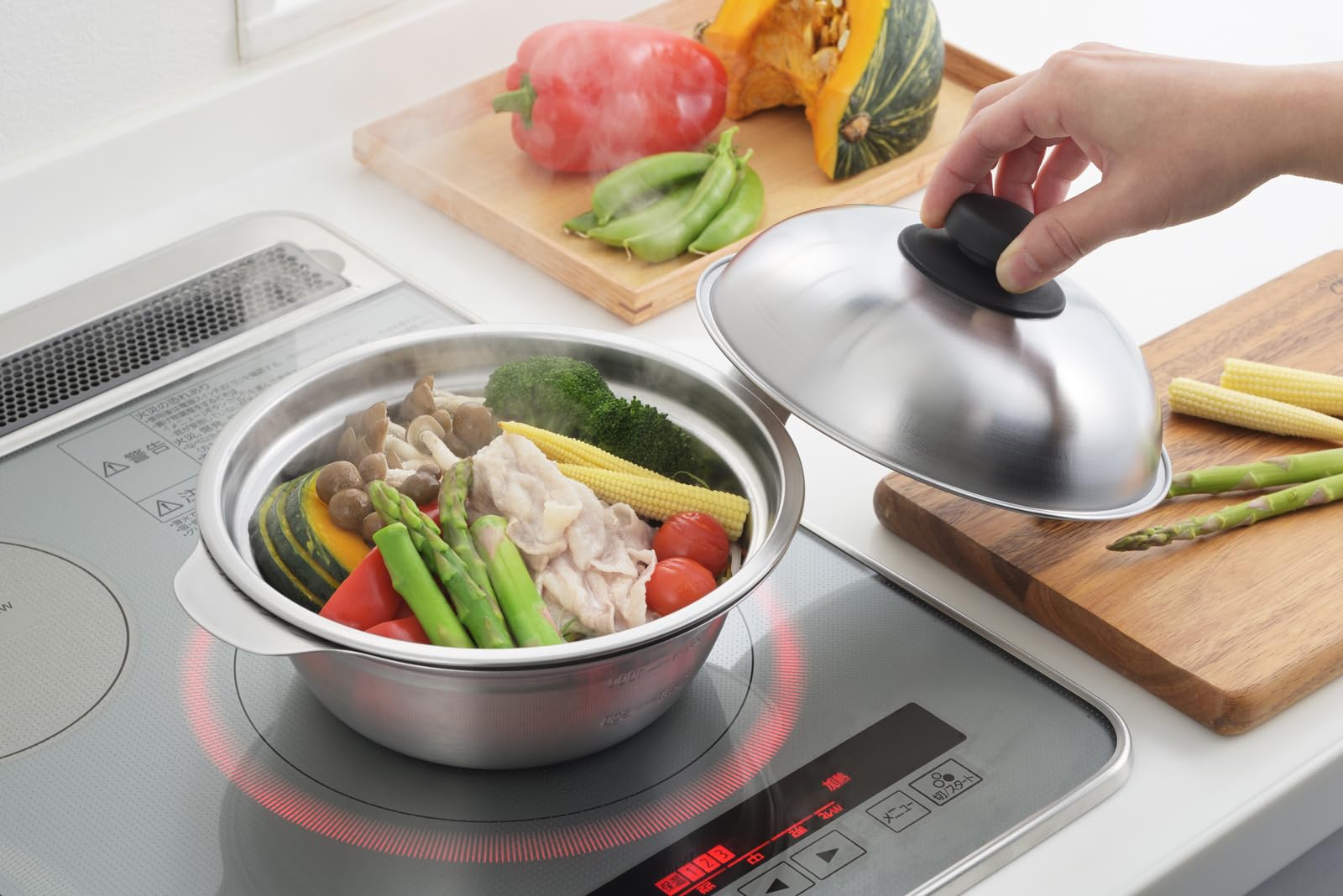 ドーム型のフタなので、タップリ野菜もスチームできる