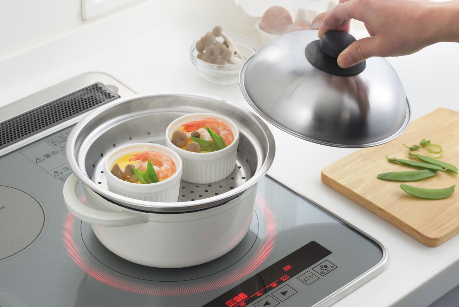 お手持ちのお鍋にのせるだけで蒸し器に早変わり!