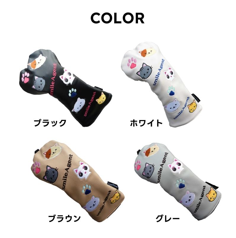 スマイルエージェント ネコシリーズ ヘッドカバー ドライバー用 ゴルフクラブの保護カバー ドライバー用 ソフト合成皮革素材で柔らかな手触りと撥水処理を施したおすすめの商品です。 細かな刺繍をお楽しみください。