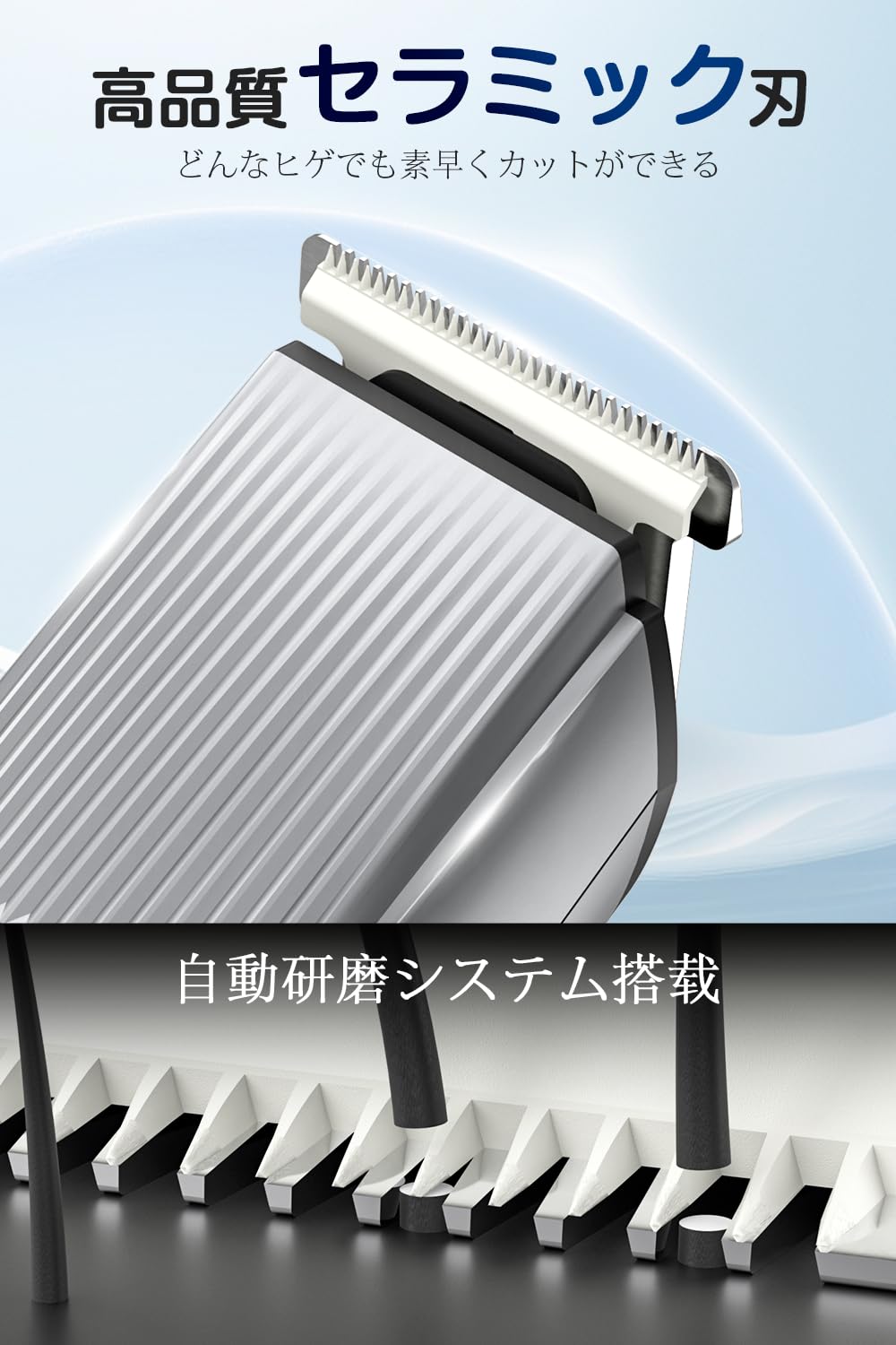 【2024革新作・日本製高精密セラミック刃】 ヒゲトリマー は、2024年の革新技術が搭載され、日本製の高精密セラミック刃を採用し、長持ちする鋭い切れ味で、どんな髭もスムーズにカットできる 髭トリマー です。 ヒゲ トリマー が引っかかることもない、ばらつかずなめらかな仕上がりになります。毎日のスタイリングを楽しみましょう。