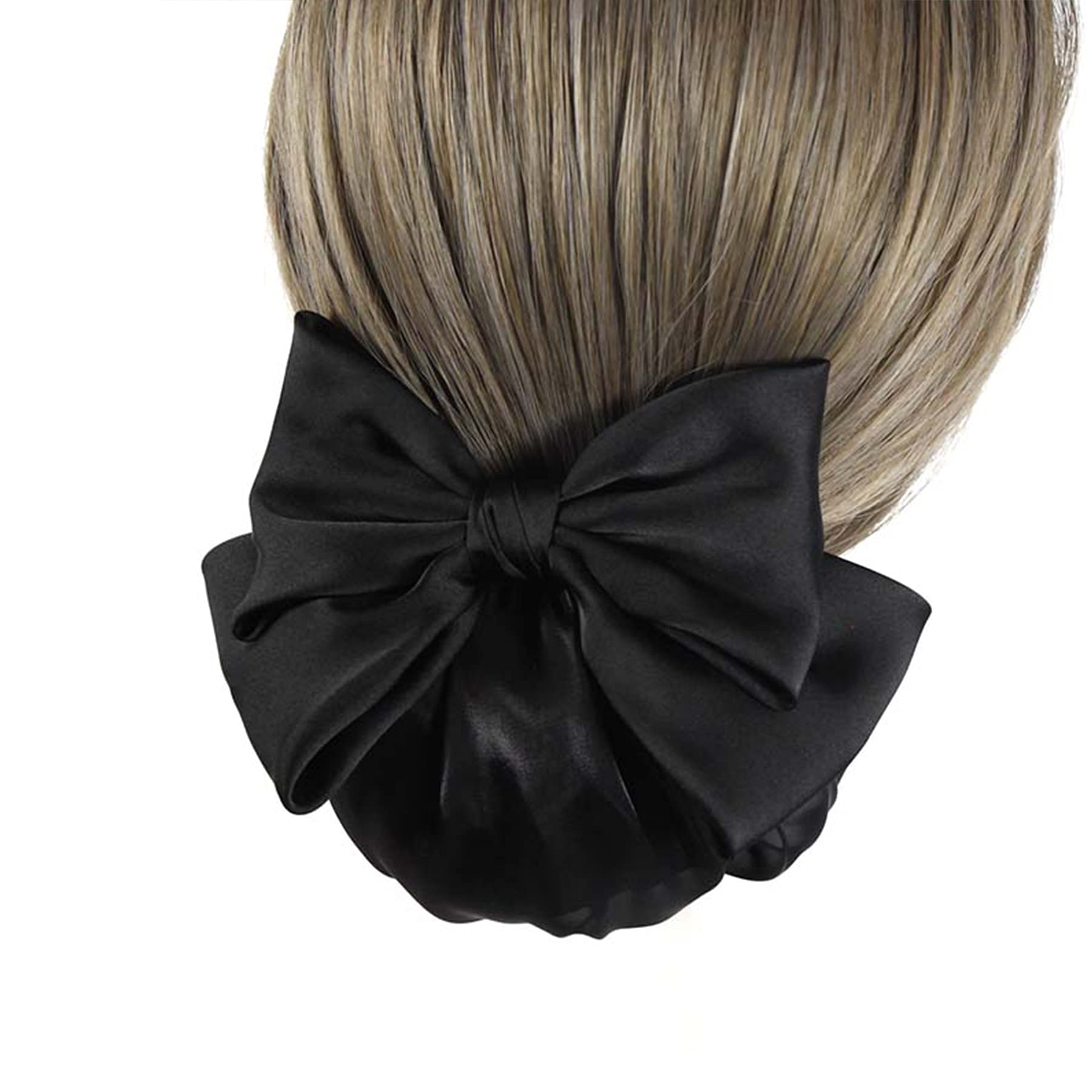 ALLMIRA リボン バレッタ ネット付き 大きめ 黒 髪色隠し 透けない シニヨン ネット カバー キャップ 髪留め クリップ お団子 看護師 おだんご おしゃれ 人気 冠婚葬祭 葬式 レディース ヘアネット(ブラック A)