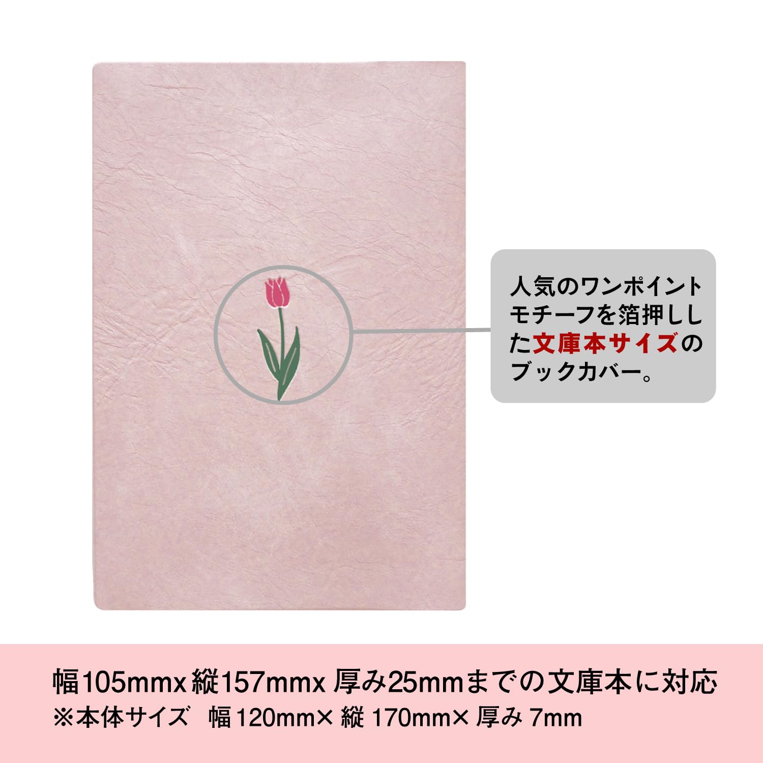 エルコミューン マトカ ブックカバー 文庫 プランタン チューリップ PRT-203 【サイズ】17×12×0.7cm 文庫サイズ 【生産国】日本 【素材】PVC 【その他】人気のお花を両面に2色の箔押しであしらった、文庫サイズのブックカバー。幅105×縦157×厚さ25㎜までの文庫本に対応しています。背幅に合わせて折り返しを調整できます。 -