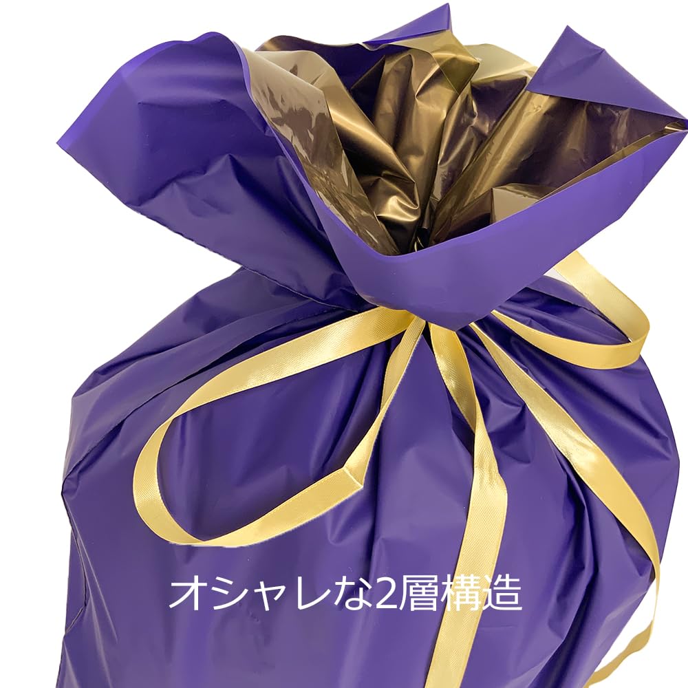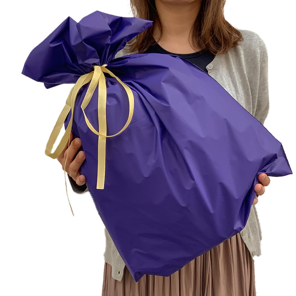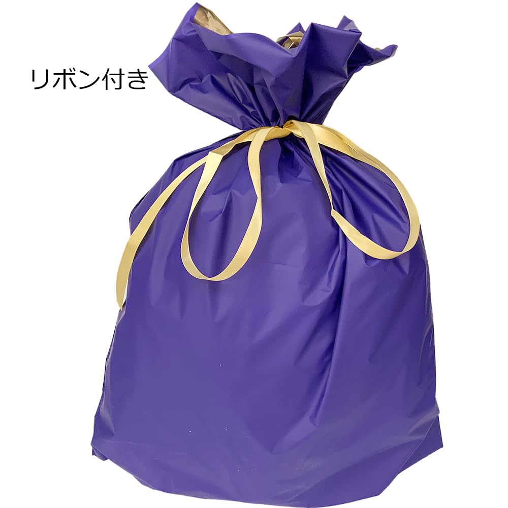 ラッピング袋 袋 中 梨地 光沢 W450×H560 mm (紫) 日本国内検品済みで安心品質 プレゼント ギフト 大きい 中サイズ リボン付 クリスマス ハロウィン 誕生日 包装