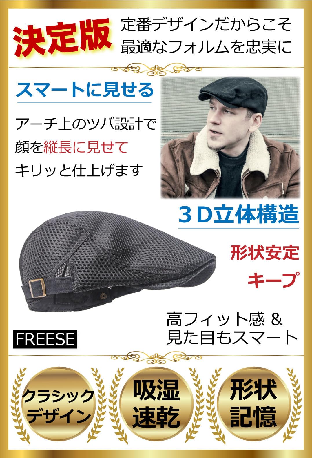 【在庫処分】[FREESE] ハンチング 帽子 キャスケット キャップ UVカット 春夏 吸湿速乾 メッシュ 通気性 涼しい メンズ