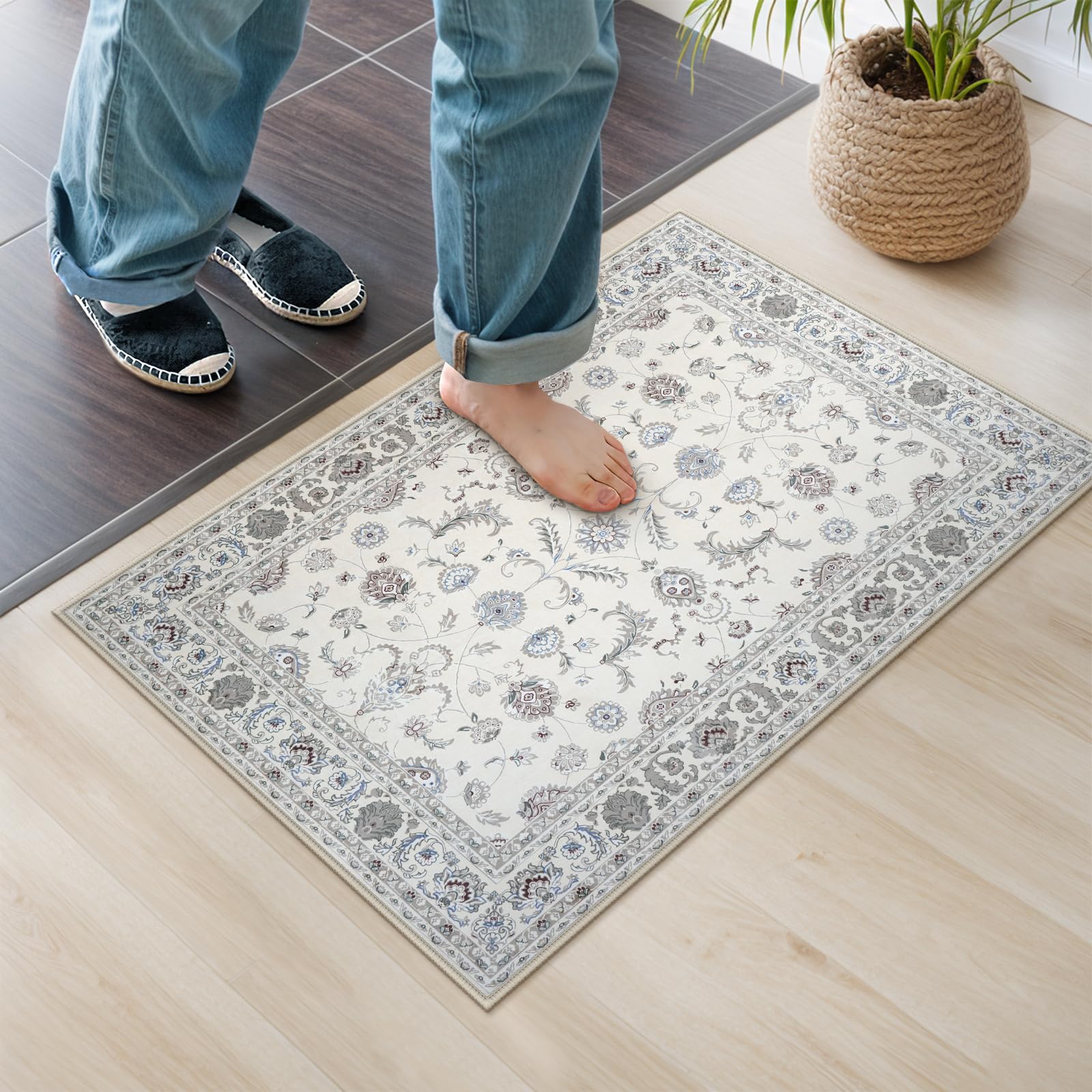 HAOCOO 玄関マット ペルシャ絨毯風 室内 夏用 50х80cm 小さい ラグ おしゃれ 洗える 耐磨耗性 滑り止め 防音 ラグマット 屋外 泥落とし シェニール オールシーズン適用 抗菌防臭 軽量 アイボリー