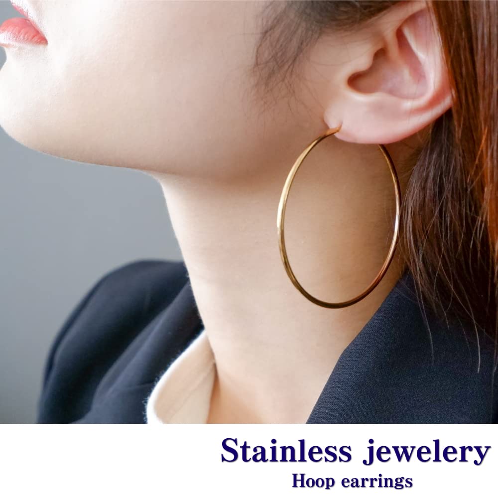 ?【豊富なサイズ展開でぴったりのフープピアスが見つかる】サイズは30mm・40mm・50mm・60mm・70mmと大きめサイズを中心に幅広く展開しています。ステンレスのまばゆい輝きが顔周りを明るく華やかに演出しどんなスタイルにもマッチします。シンプルでありながら存在感のあるデザインが特徴でカジュアルからフォーマルまでさまざまなシーンで活躍。さらに、軽量設計により耳に負担が少なくつけっぱなしでも快適にお使いいただけます。