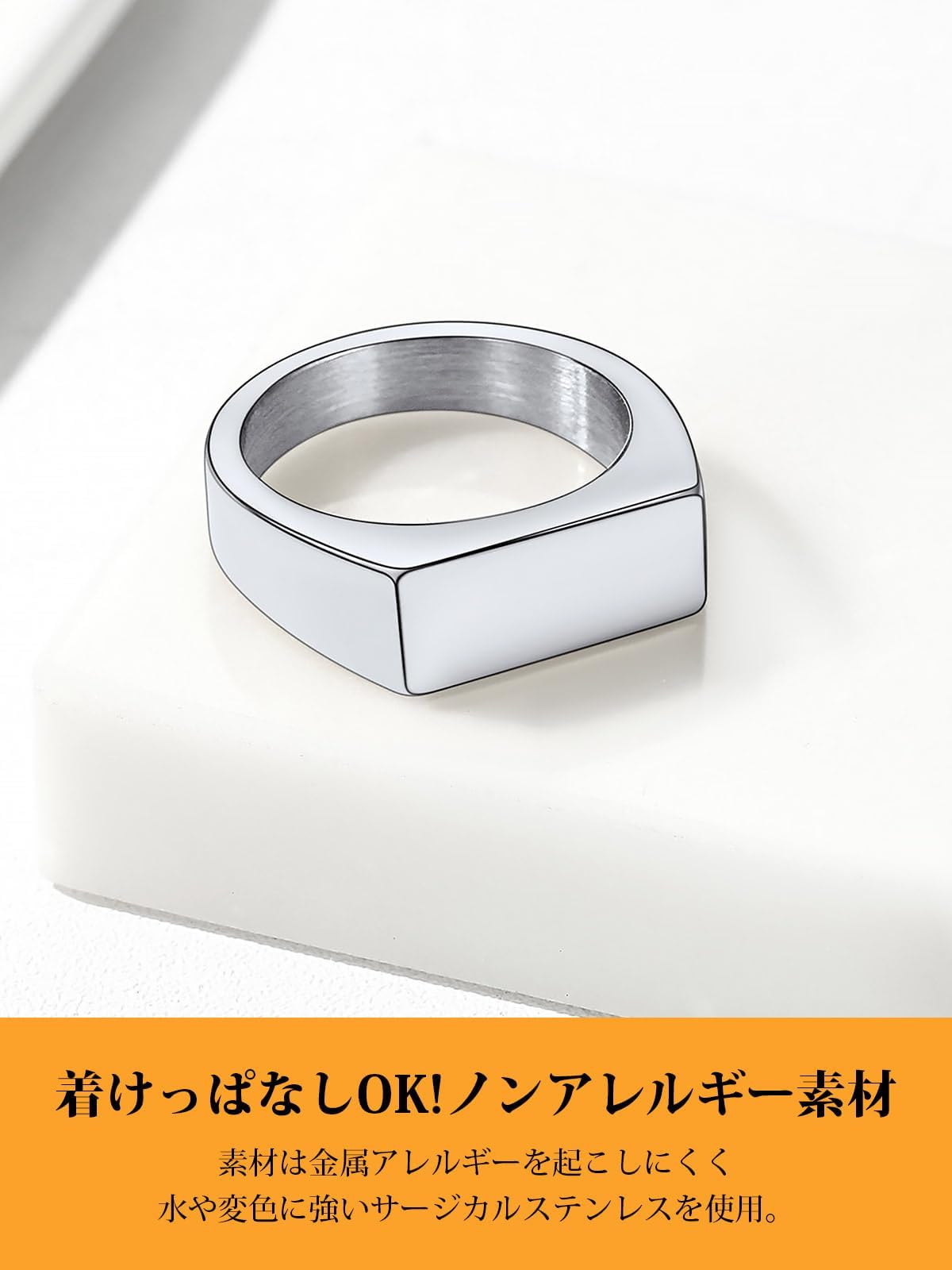 [Bestyle] 指輪 レディース 印台リング メンズ 指輪 人気 サージカルステンレス 金属アレルギー レトロ リング 男女兼用 カコイイ 幅広 太め7mm 鏡面仕上げ シンプル 誕生日 プレゼント アクセサリー