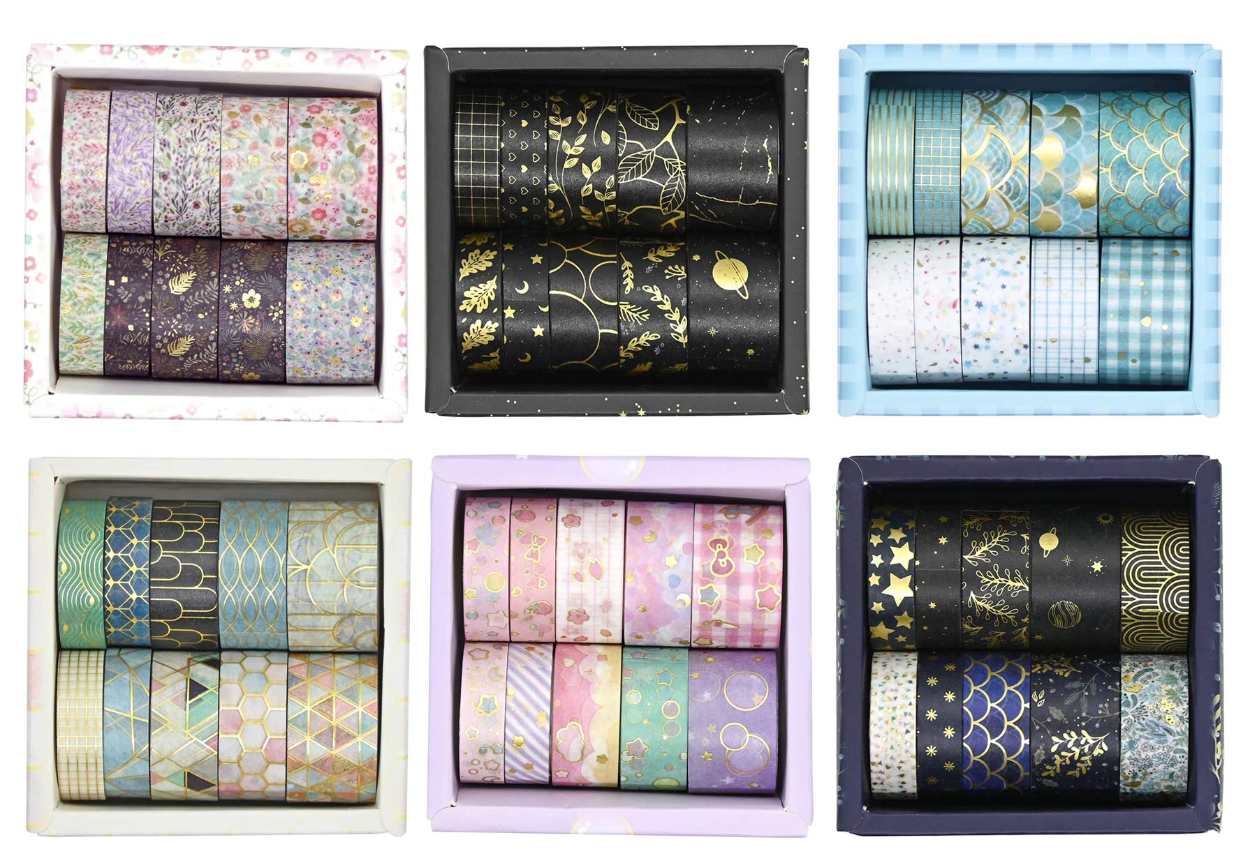 6箱×10巻セット。2cm幅×2巻,1.5cm幅×2巻,1cm幅×4巻入っています。長さは全て3メートル。海外製(中国)のマスキングテープセット。