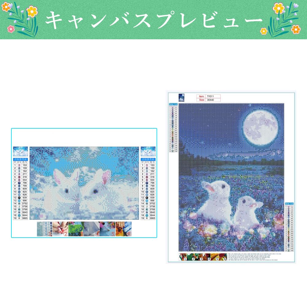 【デザイン】うさぎ //【サイズ】40*30cm //【付属ツール】ビーズタッチペン*1本、ビーズ皿*1個、グルー*1枚 //【注意事項】1.キャンバス表面の保護フィルムは製作の進行に合わせて徐々に引き裂いてください。2.誤飲を避けるために、ビーズは幼児が触れない位置に保管してください。