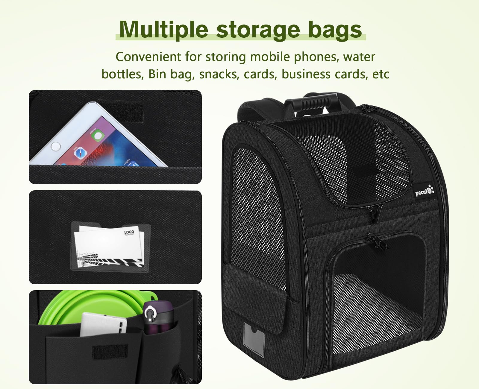 ペキュート Pecute ペット キャリーバッグ 猫用 犬用 リュック メッシュ窓 通気性 拡張可能 2WAY ペットハウス ケージ 折り畳み お出かけ ドライブ 旅行 通院 防災 避難用 キャリー ブラック