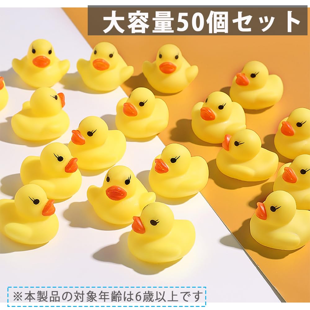【大容量50個セット】たくさんアヒルと遊べる50個セット。たくさん浮かべて遊ぶことができます。アヒルのデザインはランダムで入っておりますので、商品画像と同じアヒル以外のデザインも入っております。商品サイズ:約4cm×約4cm